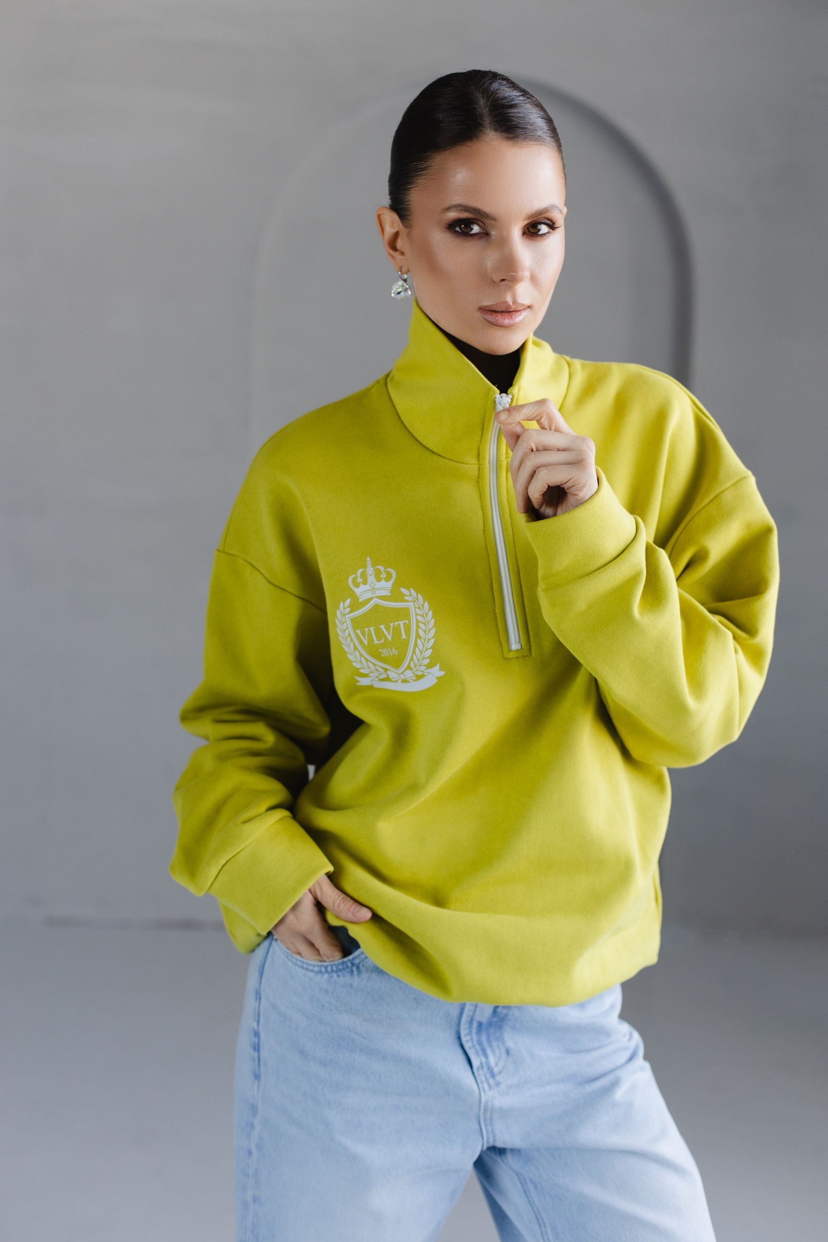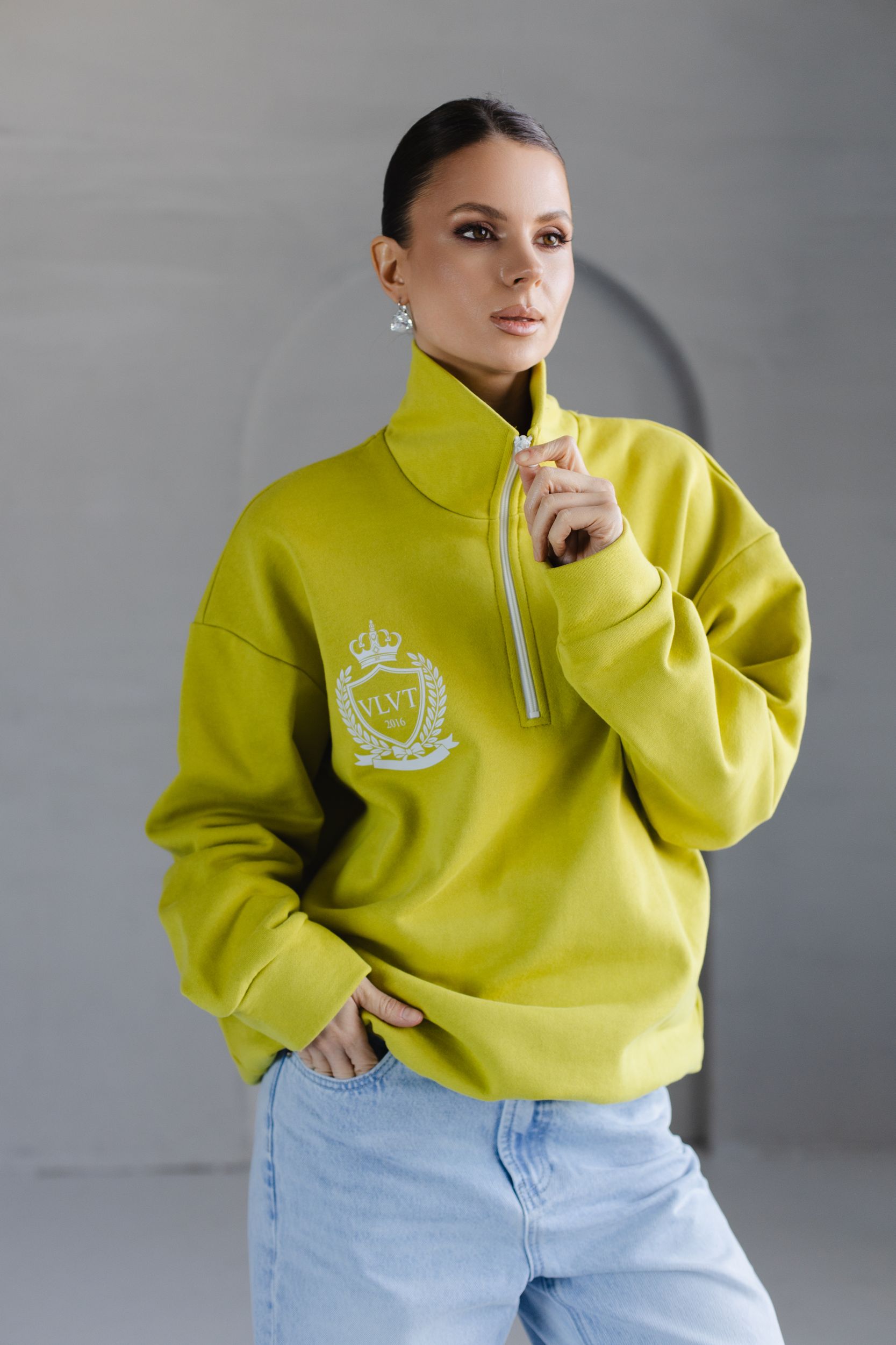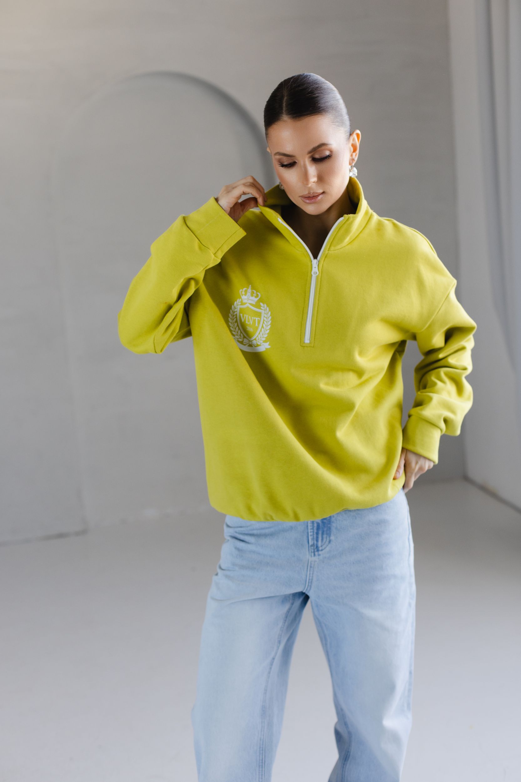 - Воротник-стойка на молнии.