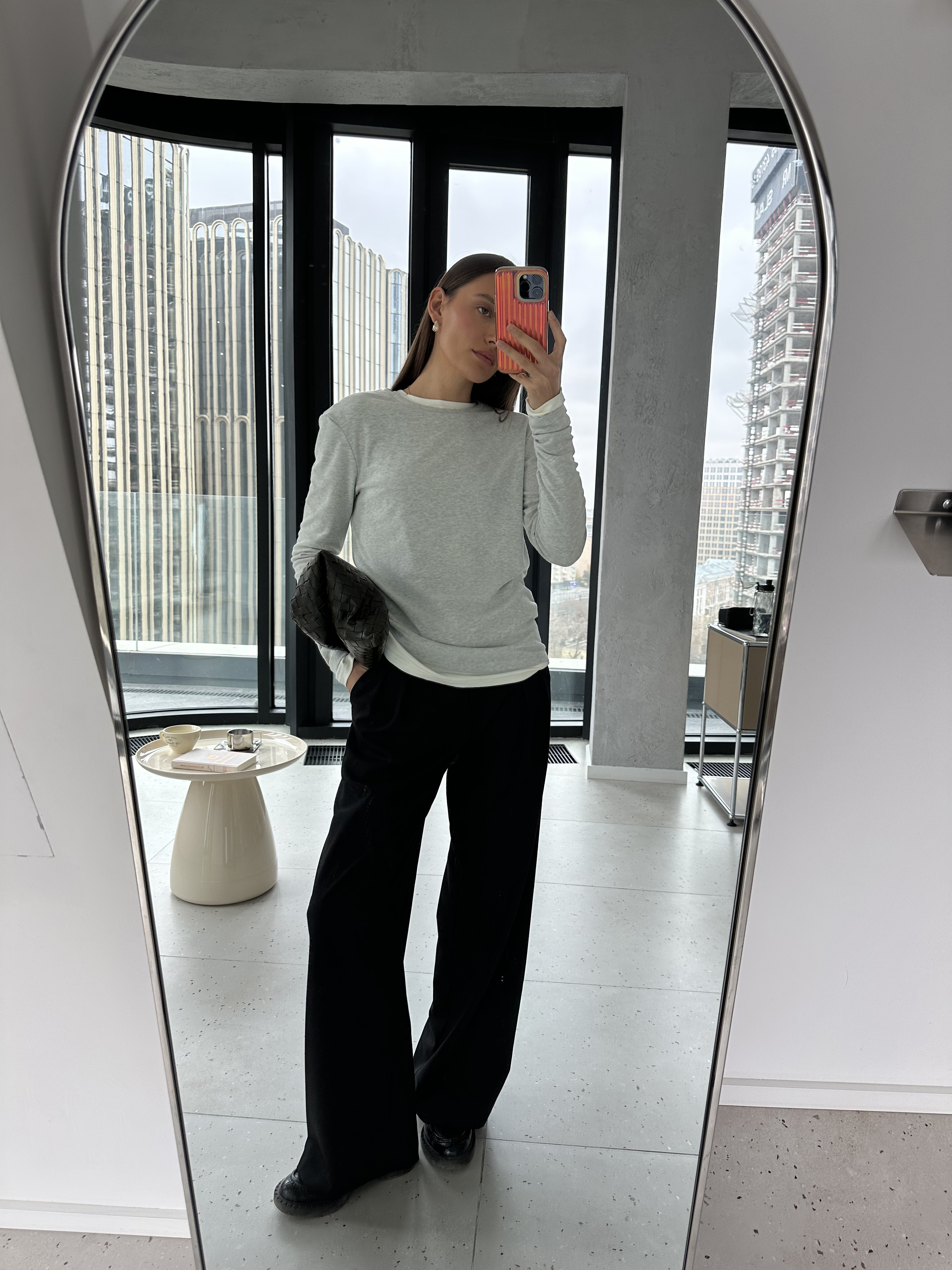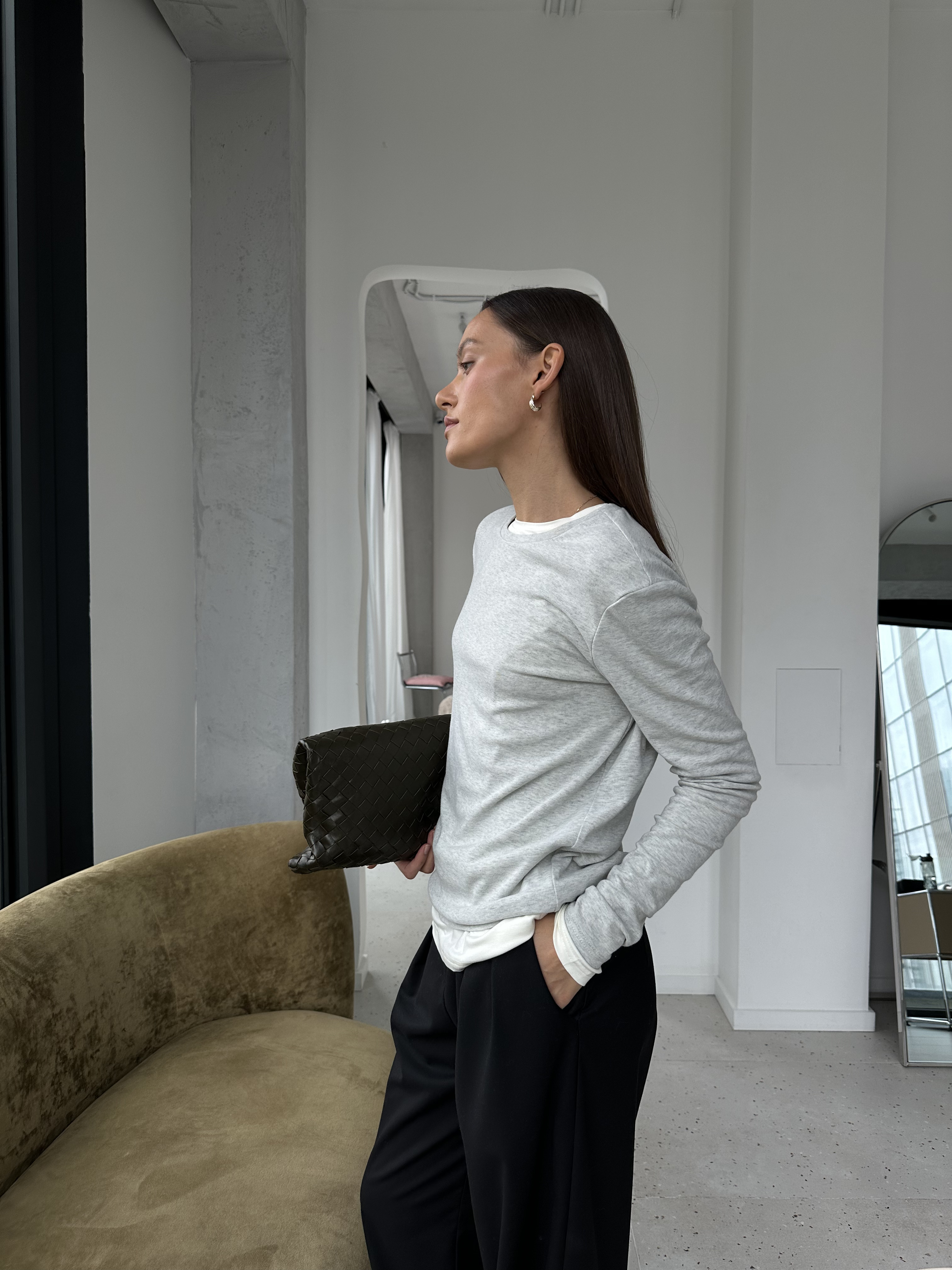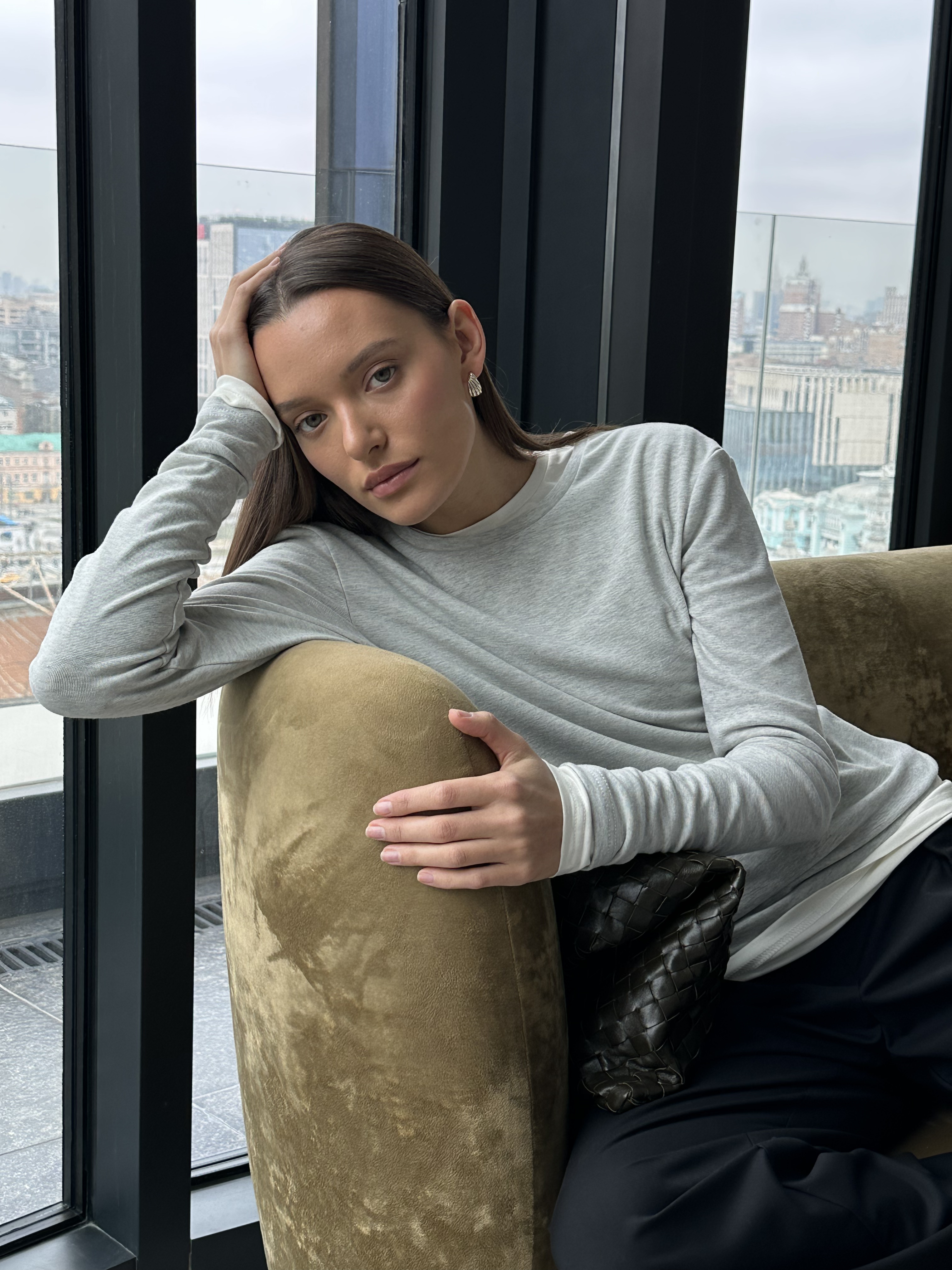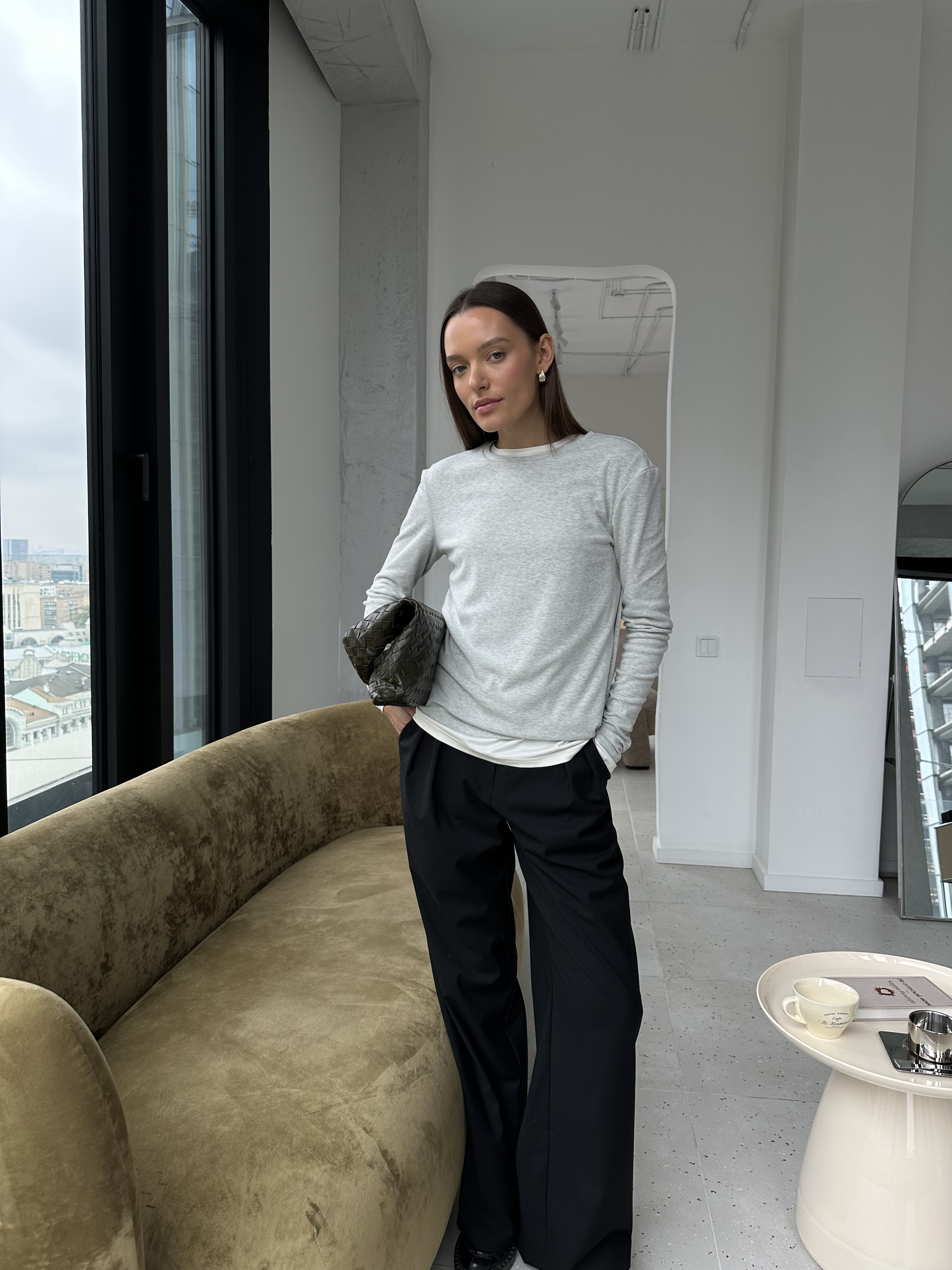 Незаменимый элемент любого гардероба - лонгслив в универсальном оттенке светло-серый меланж.