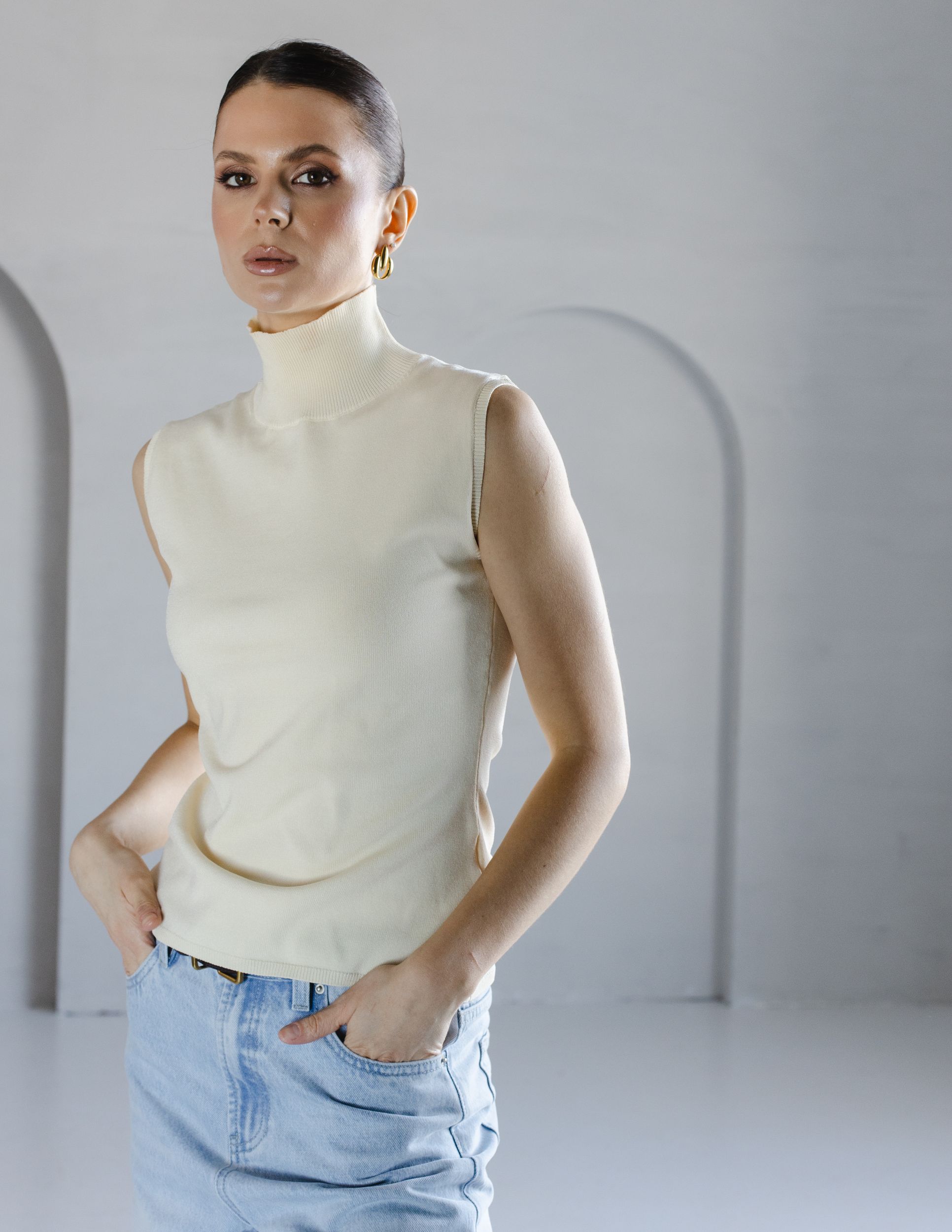 Базовый топ без рукавов из мягкого вискозного трикотажа.