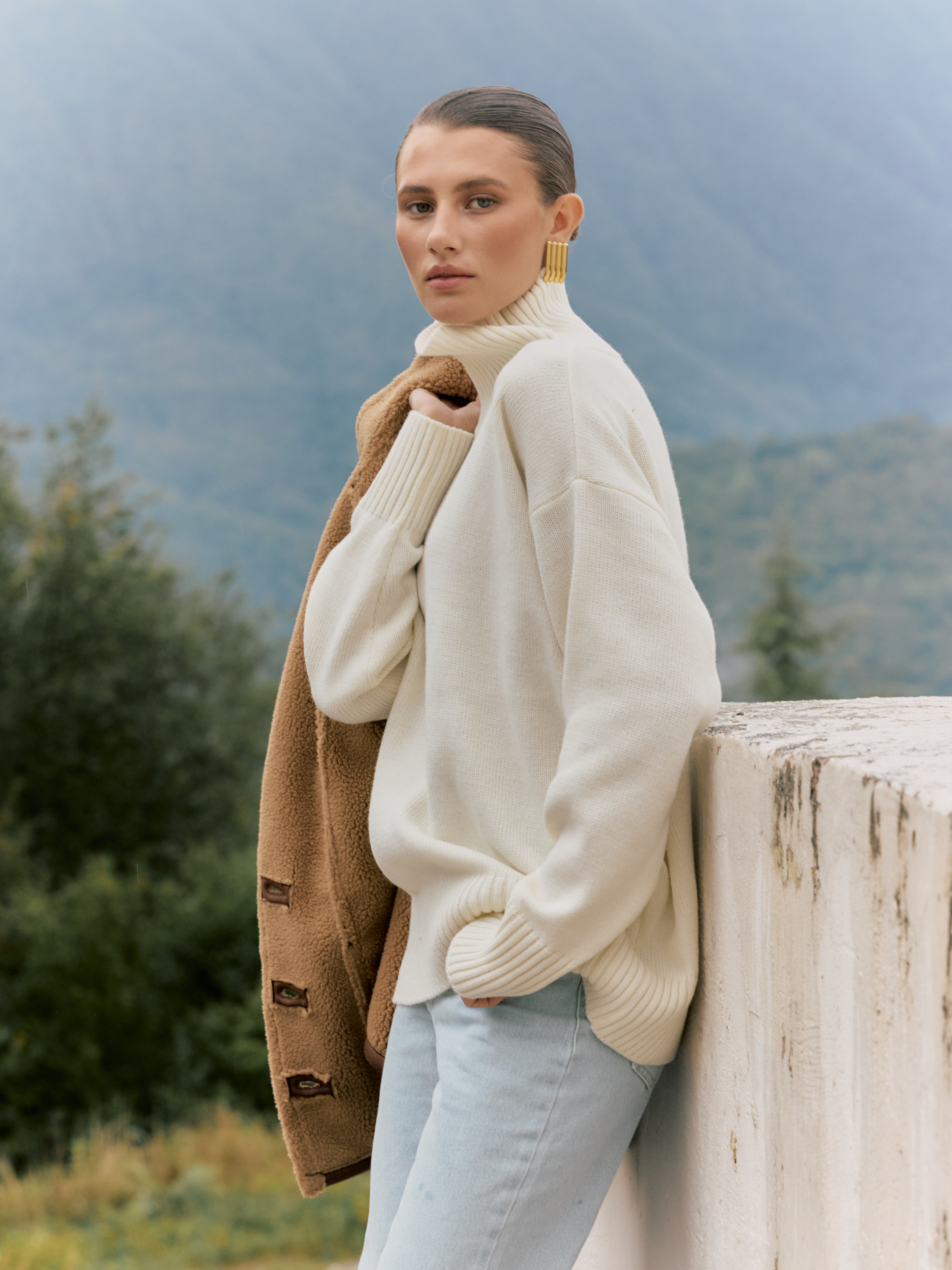 M (подходит на M-L/44-46): ширина по груди - 52 см, ширина по талии - 50 см, длина по переду - 62,5 см, длина плеча - 14 см, длина рукава - 63,5 см.