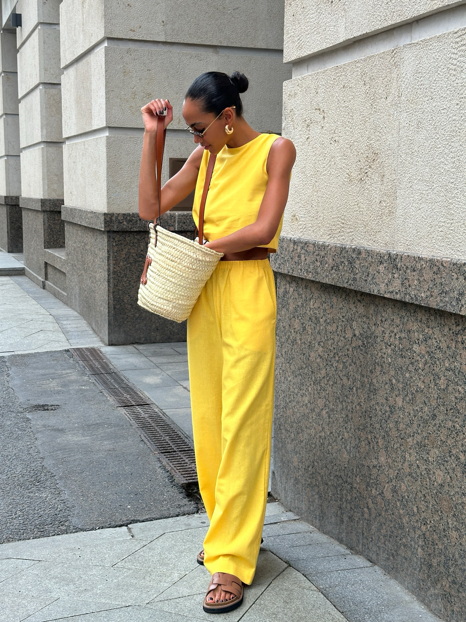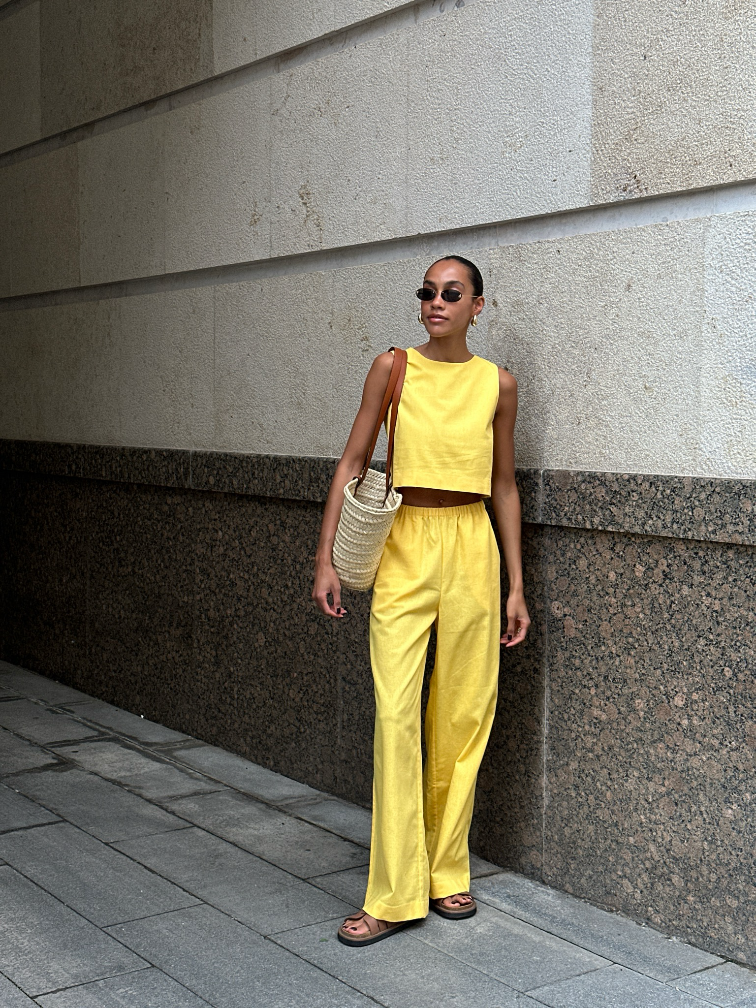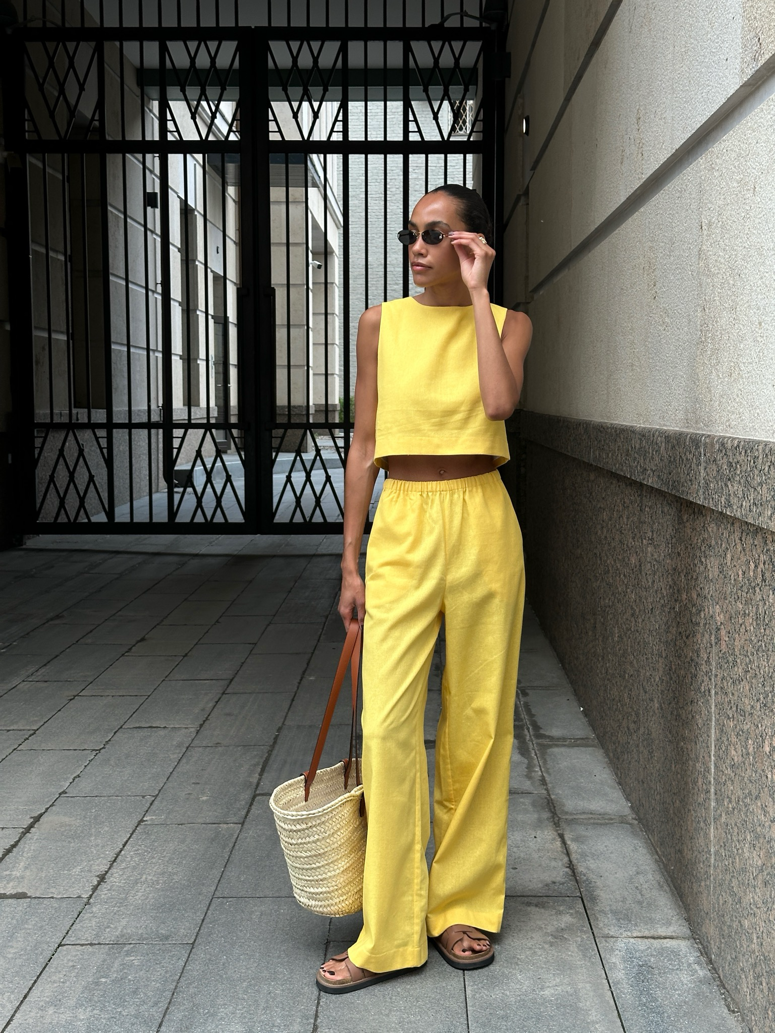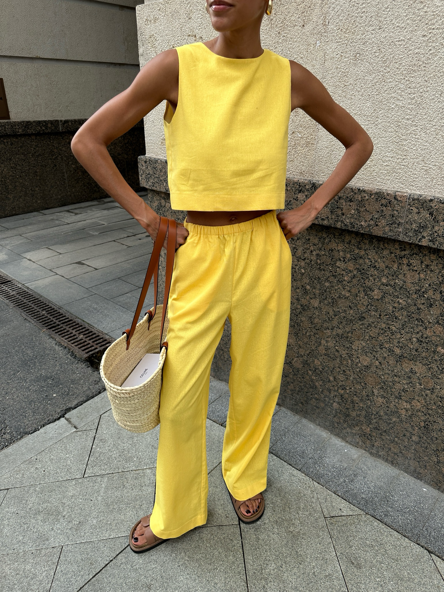 Широкие брюки из лимонного льна для легких, летних образов.