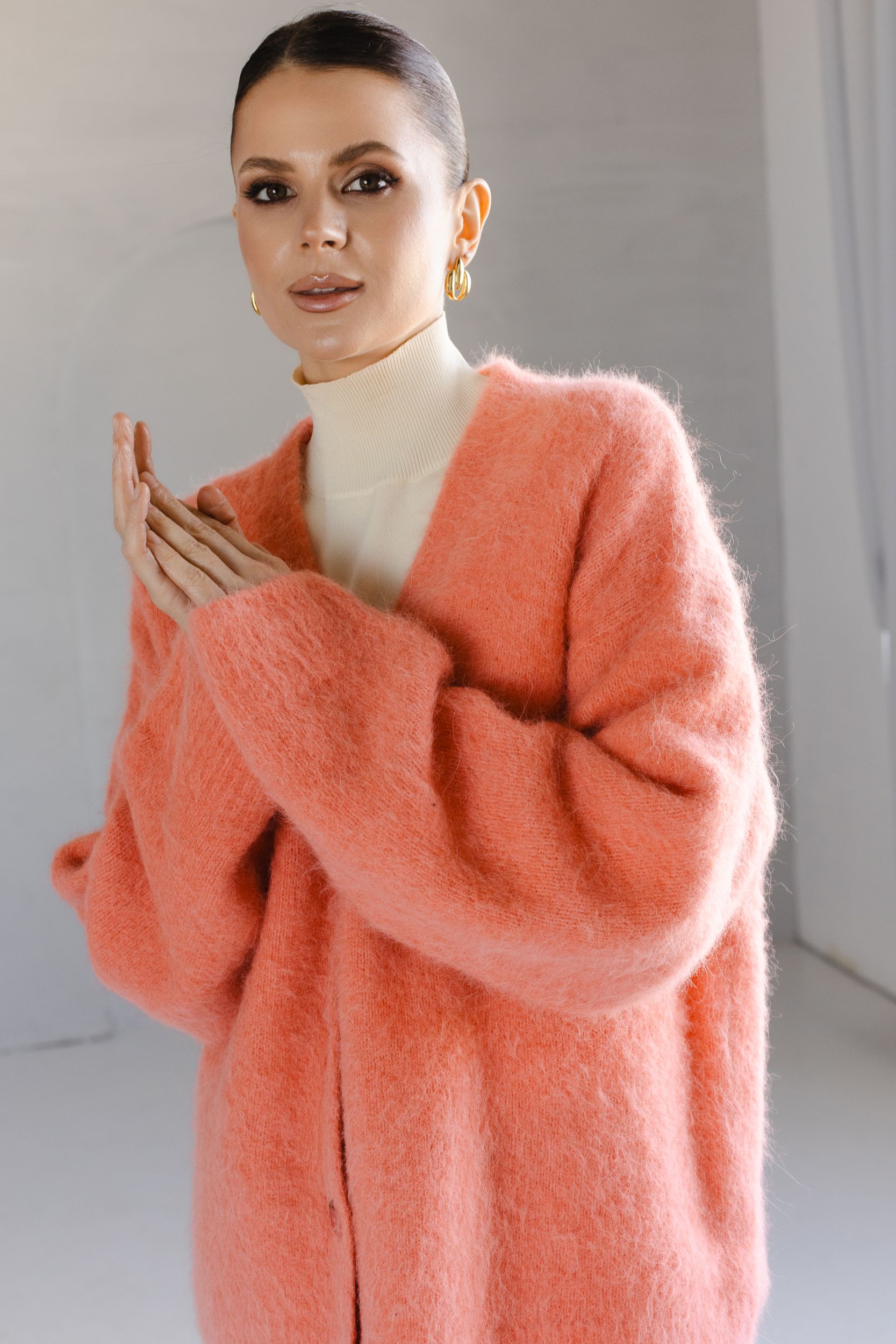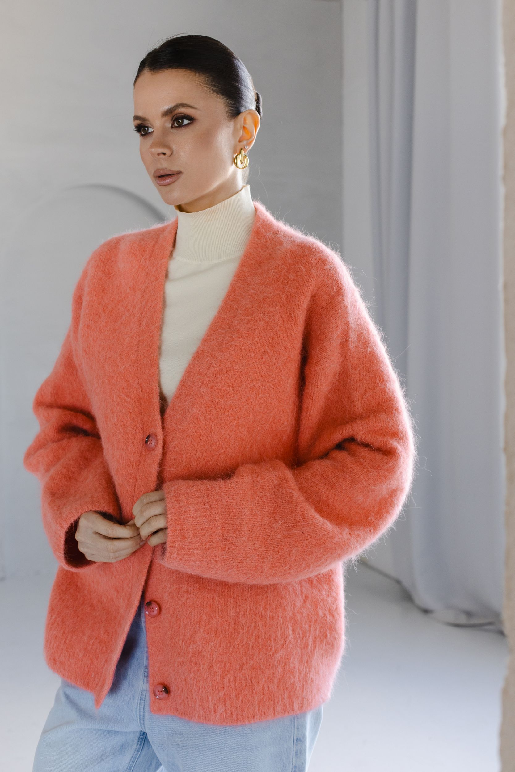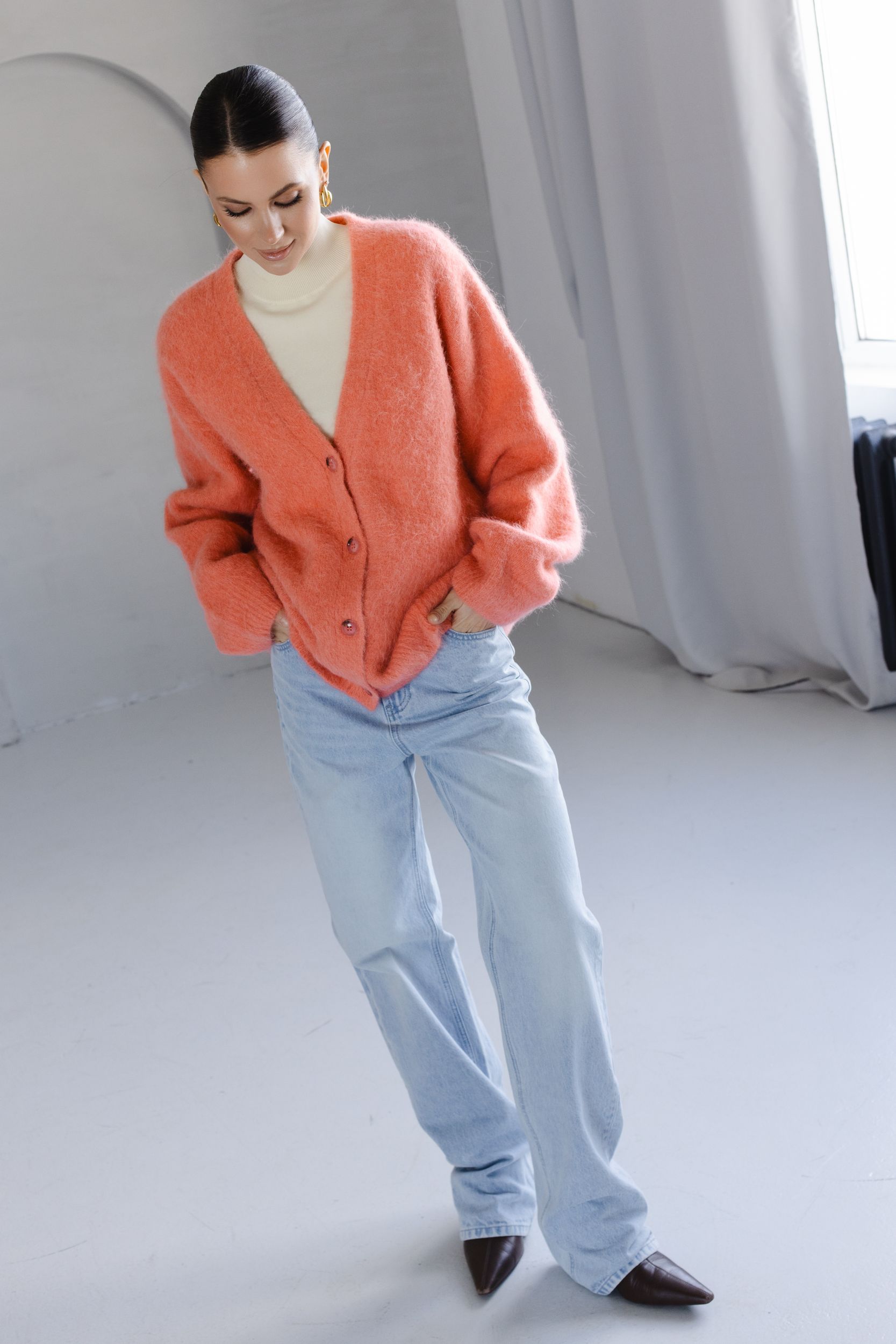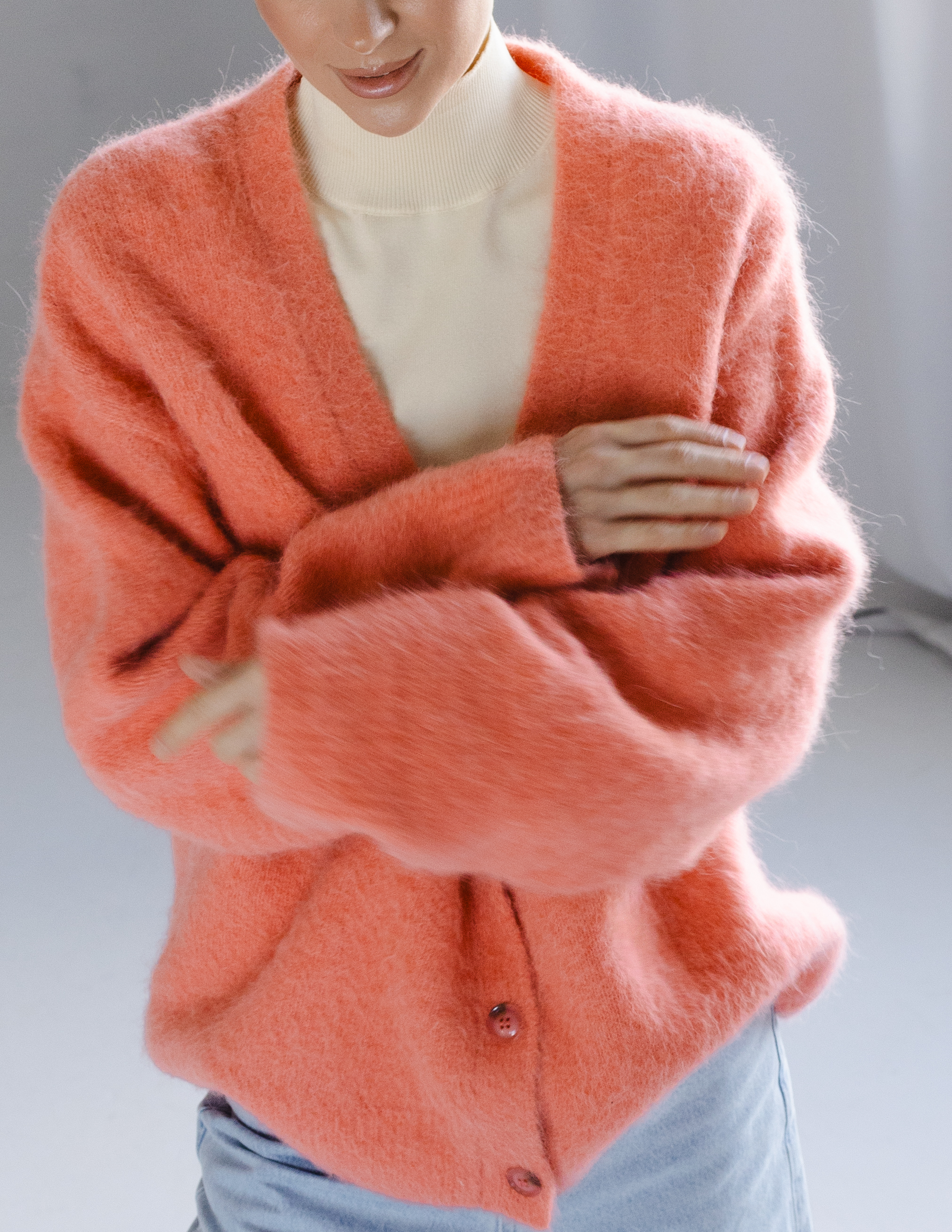 Кардиган из пушистой пряжи на основе шерсти альпаки - наш бестселлер, который идеально сочетается с комбинациями, шелковыми костюмами, джинсами и футболками.