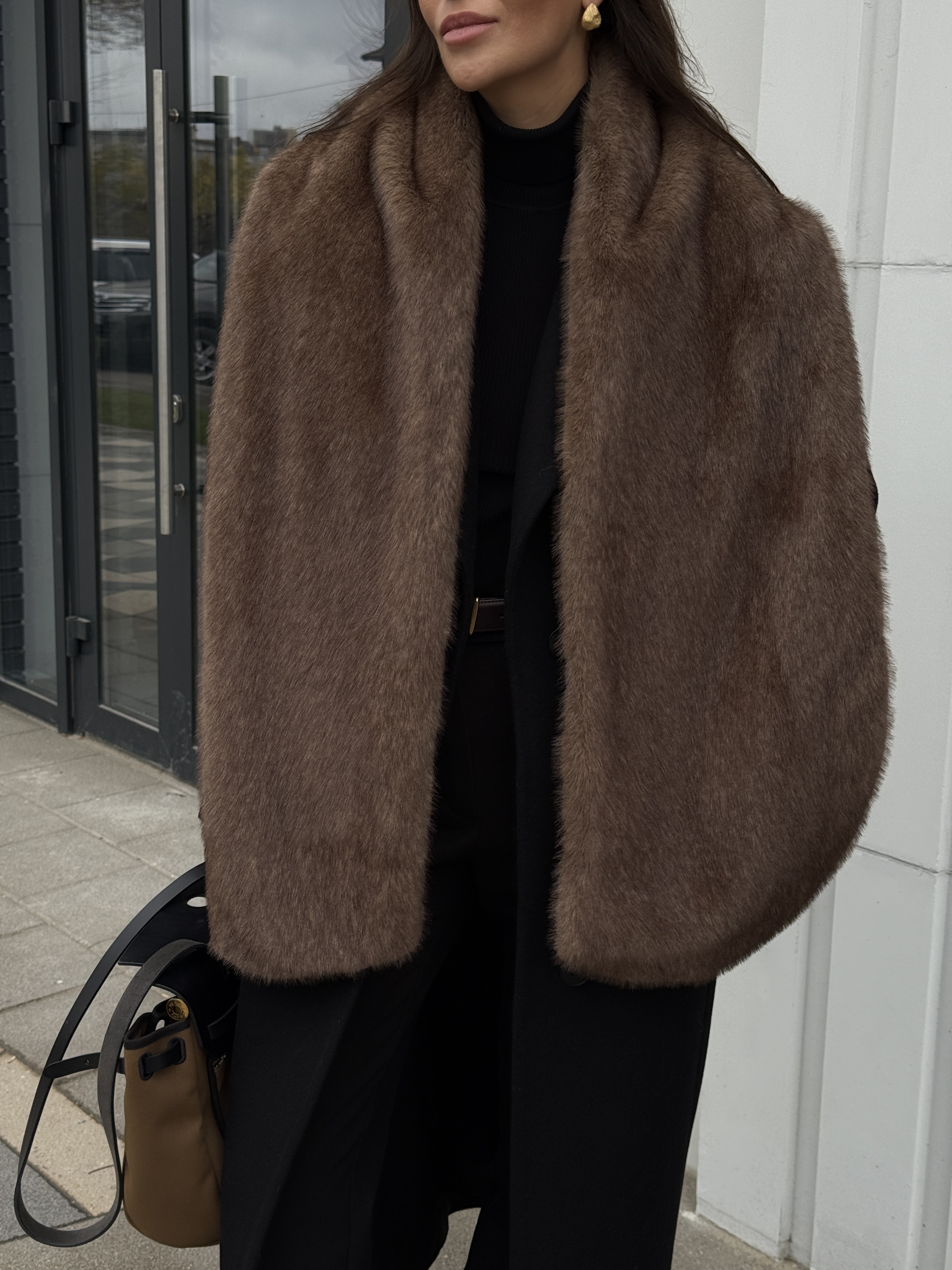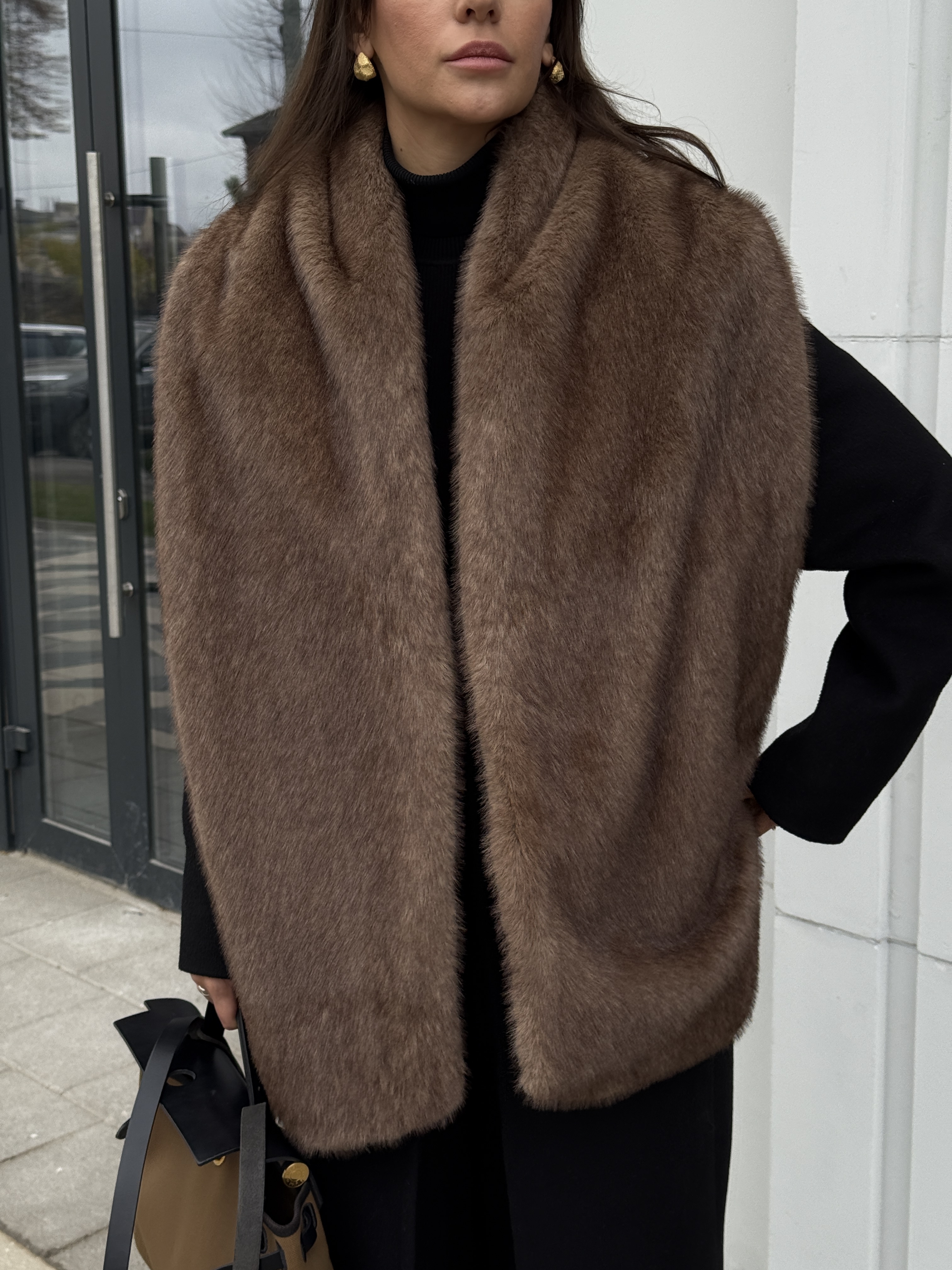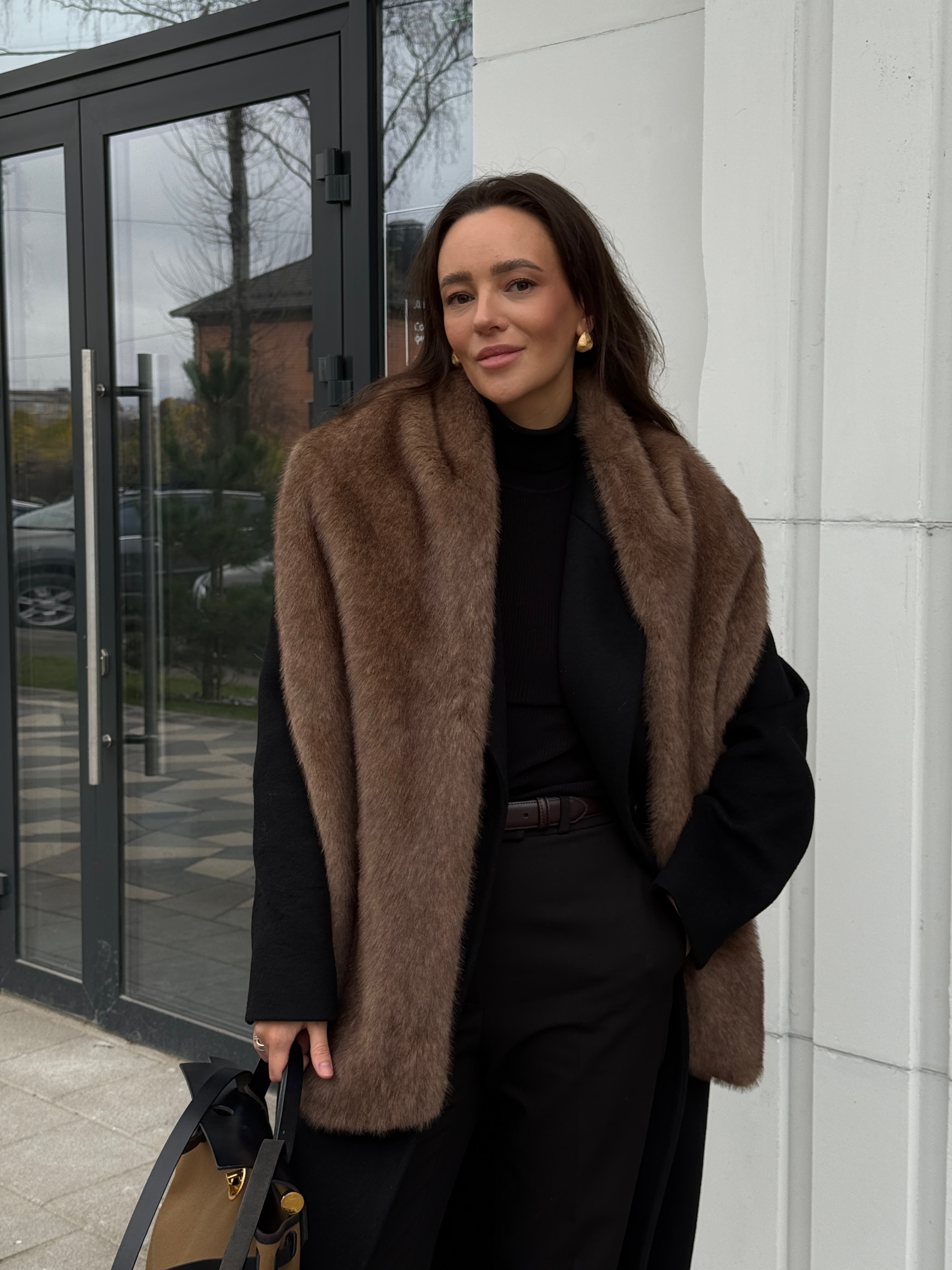 Шарф с имитацией соболя в светло-коричневом оттенке.