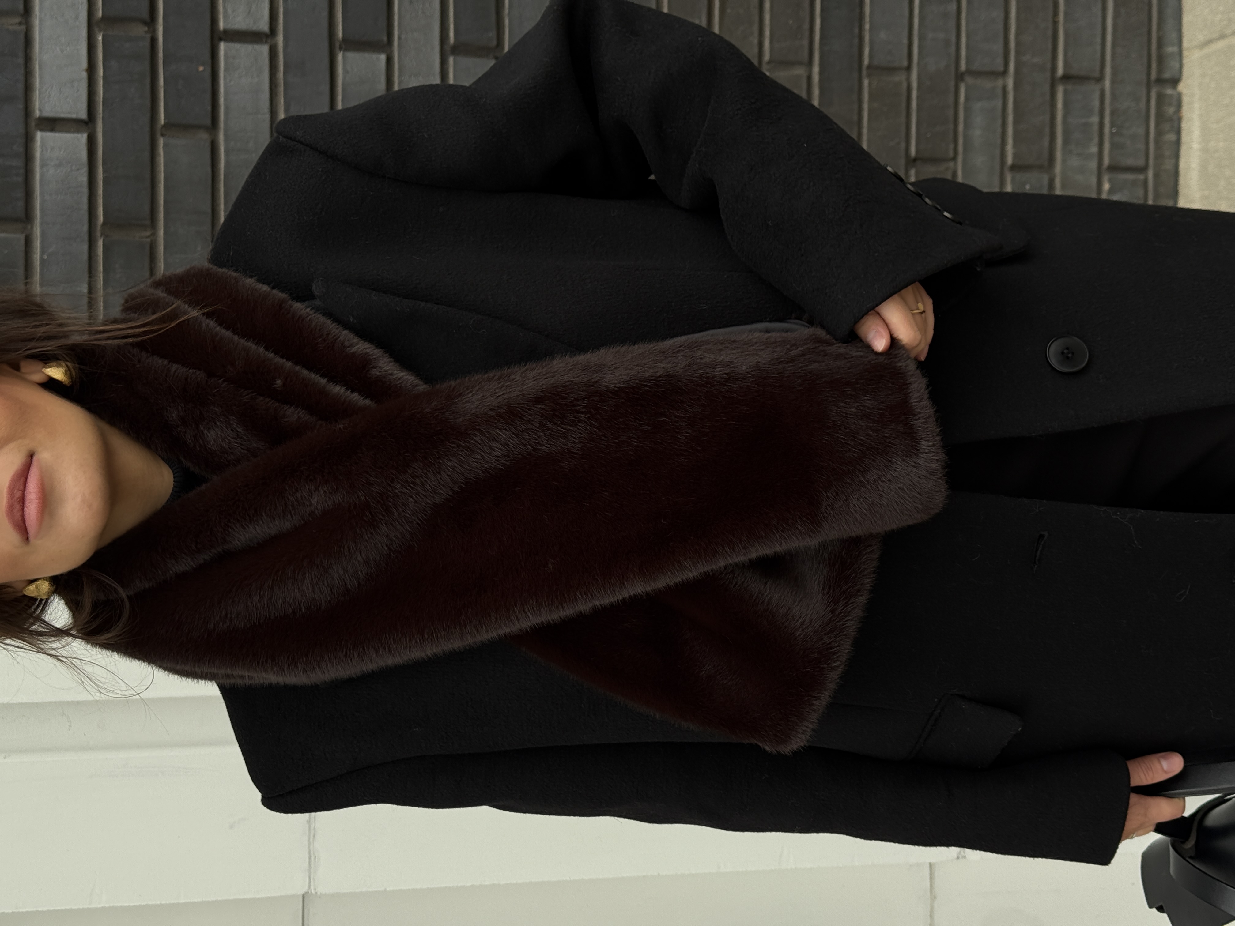 Шарф с имитацией натурального меха в коричневом оттенке.