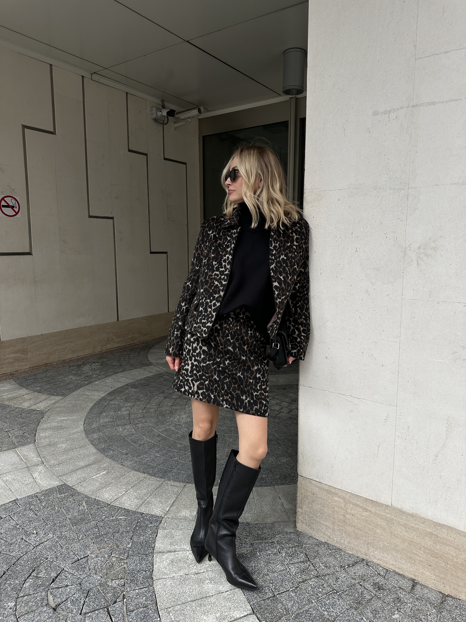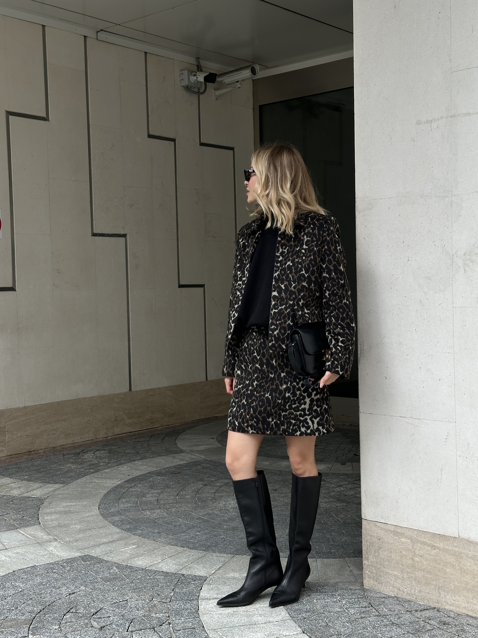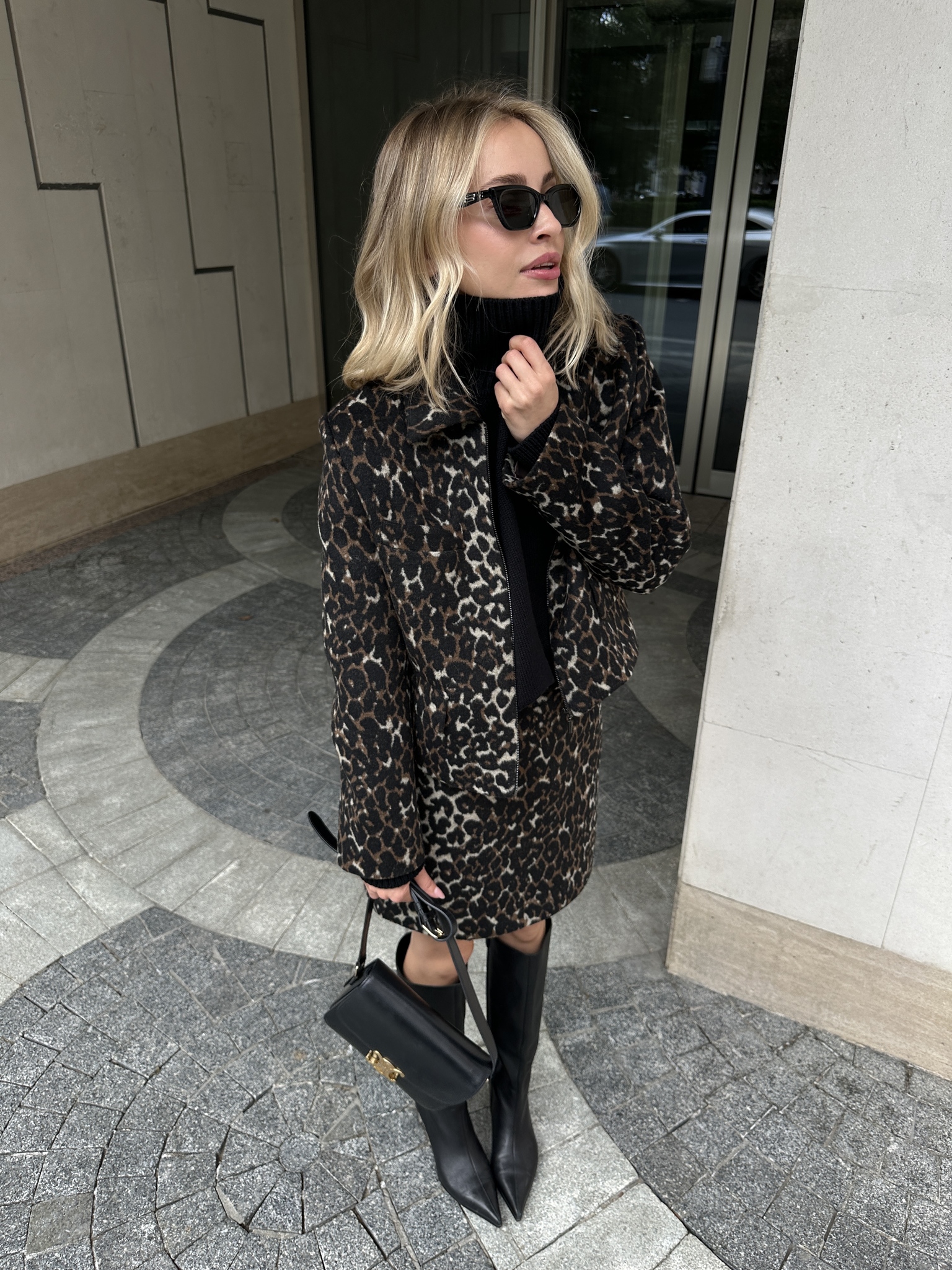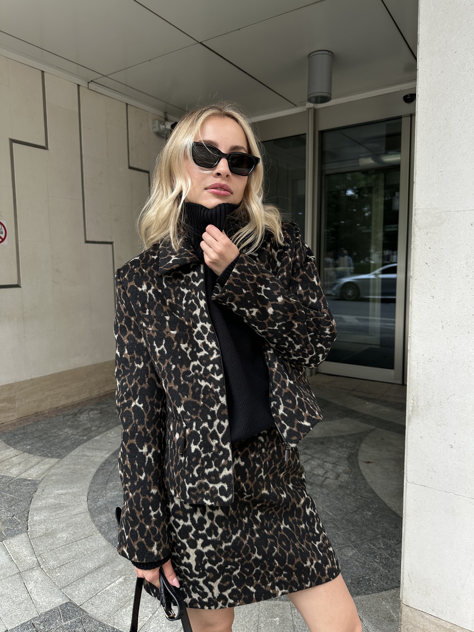 Укороченное пальто прямого кроя с леопардовым принтом.