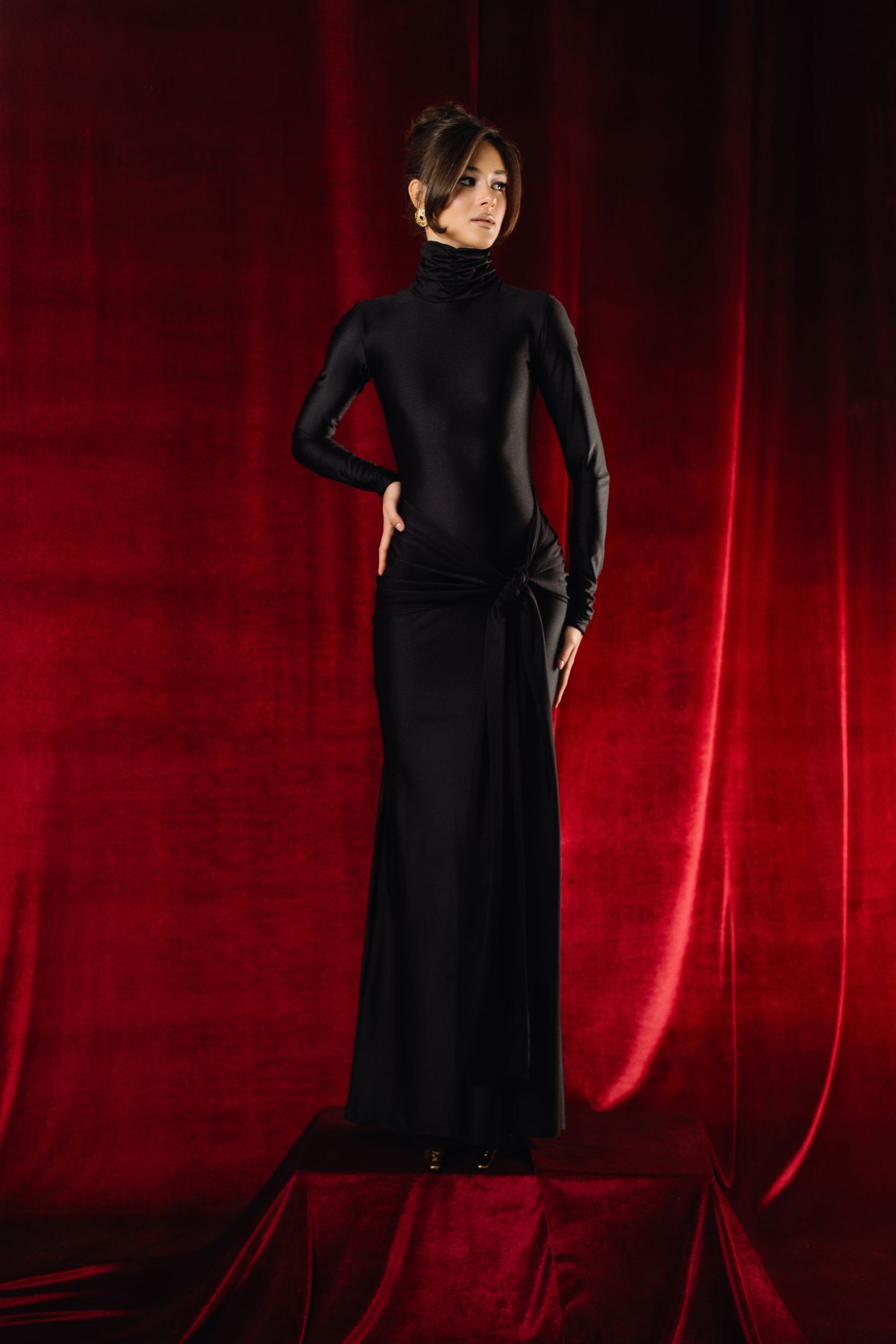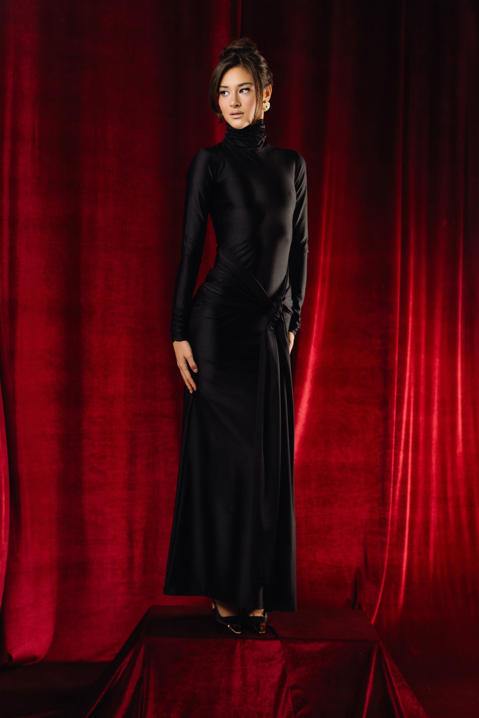 Утонченное платье из черного трикотажа для незабываемого праздничного образа.