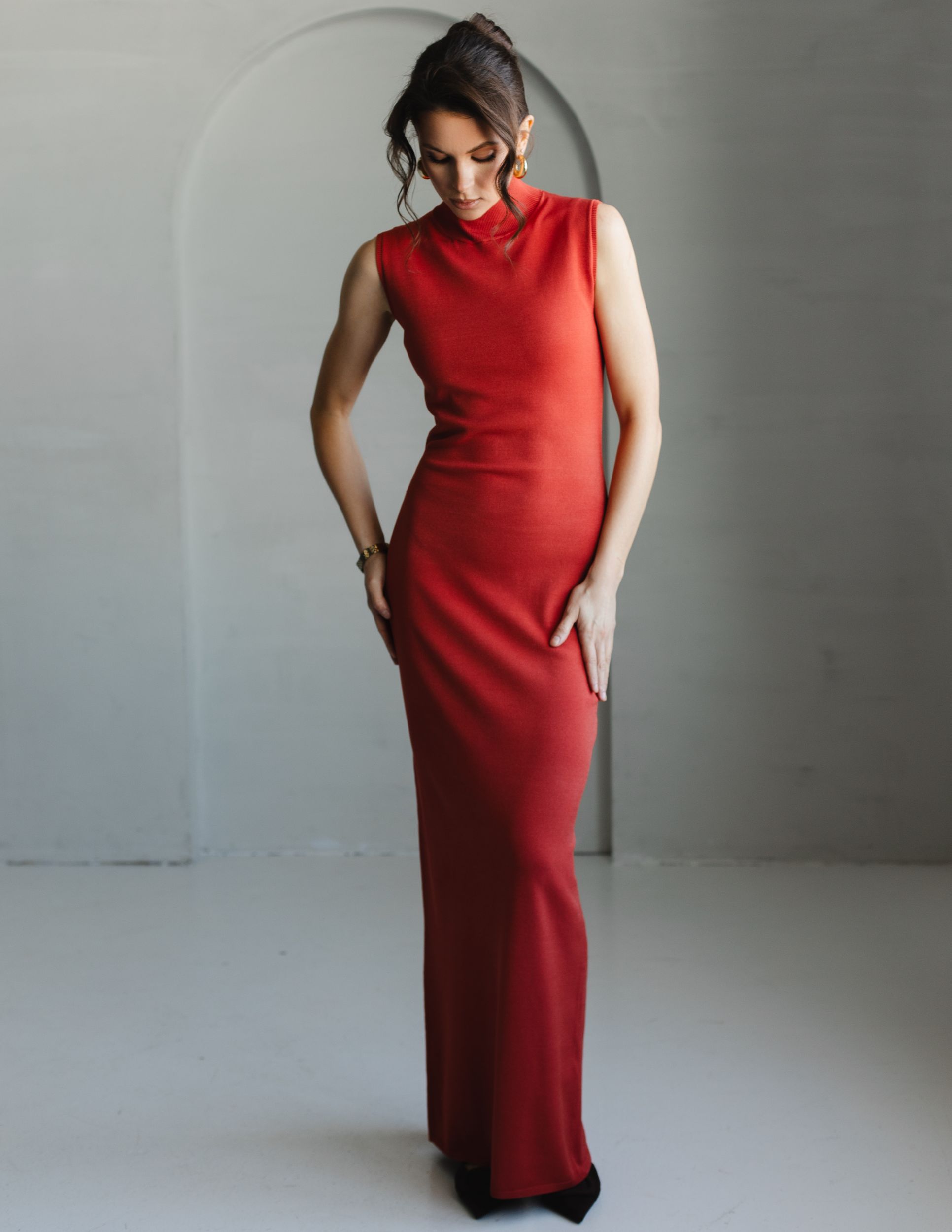 Наш bestseller - облегающее платье со стойкой в новом оттенке.