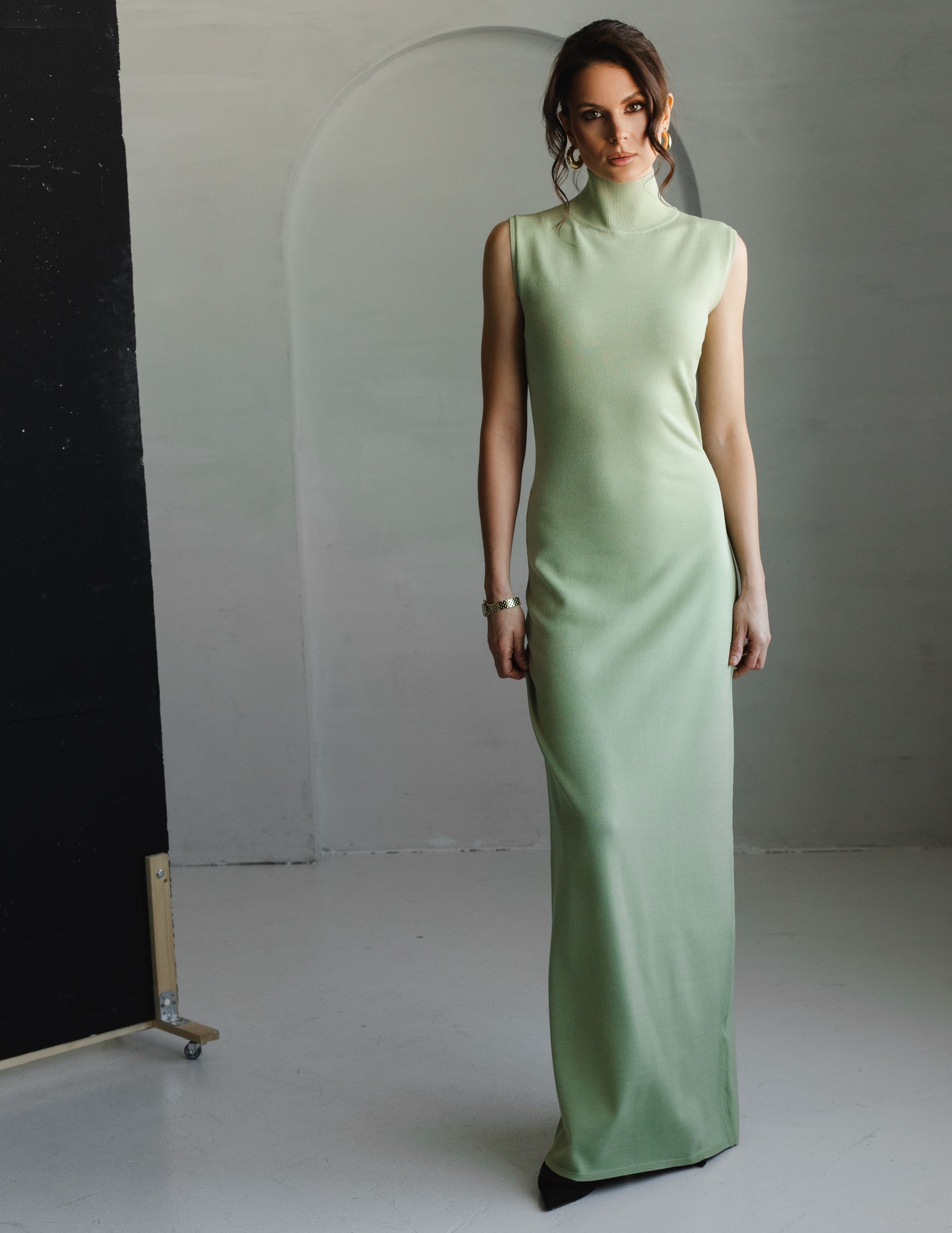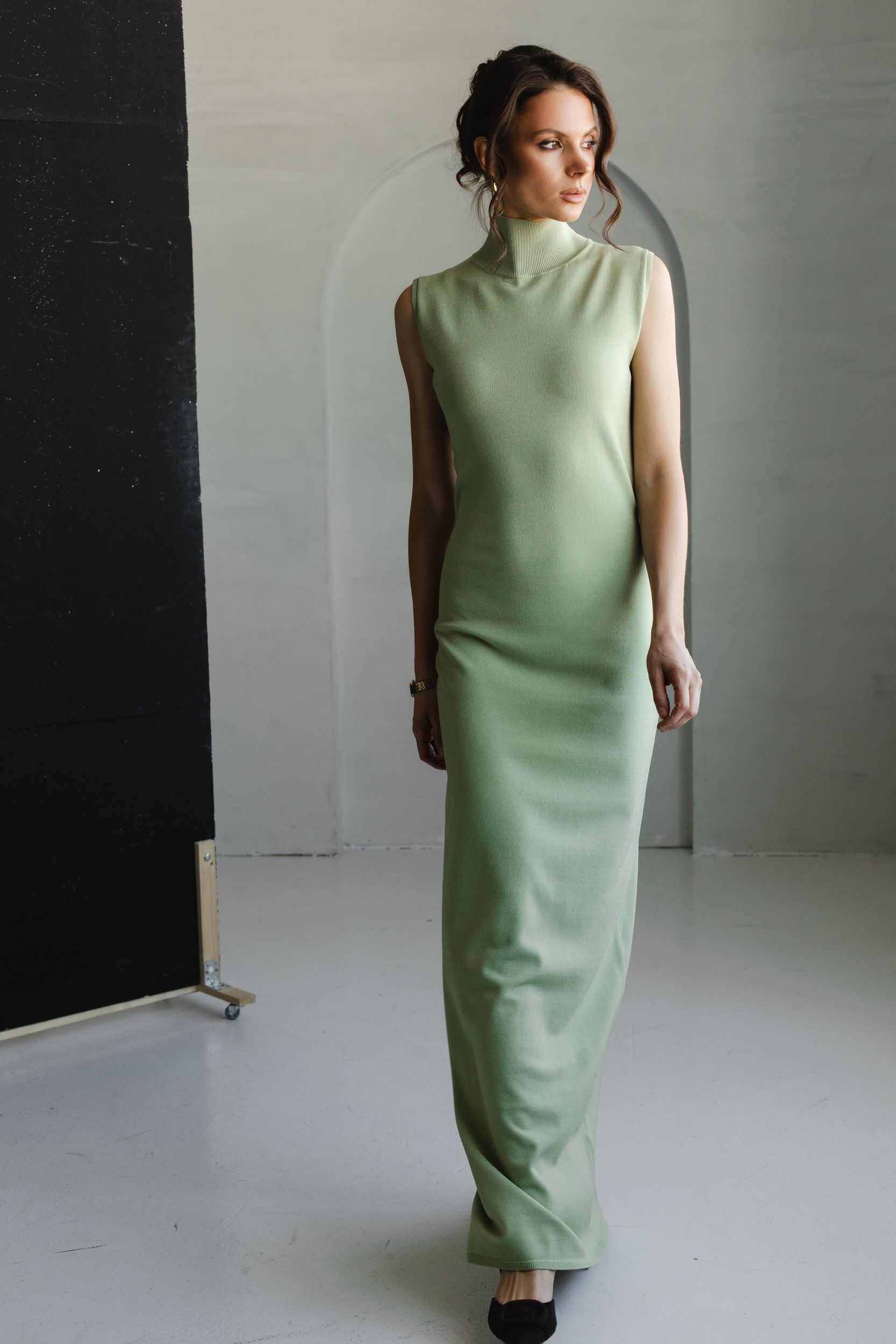 Наш bestseller - облегающее платье со стойкой в новом оттенке.