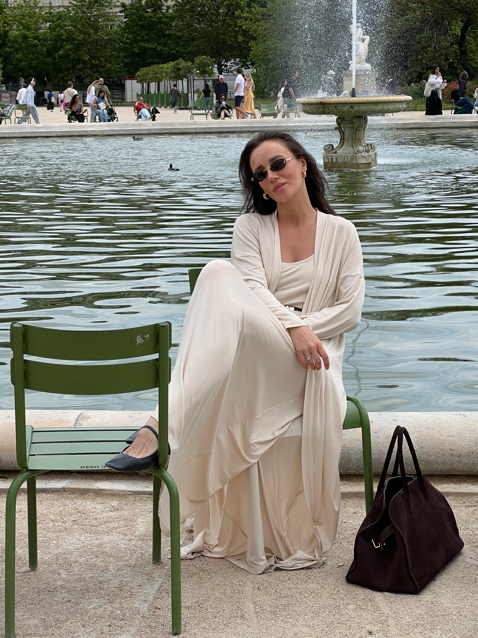 Платье-майка из трикотажа в кремовом оттенке.