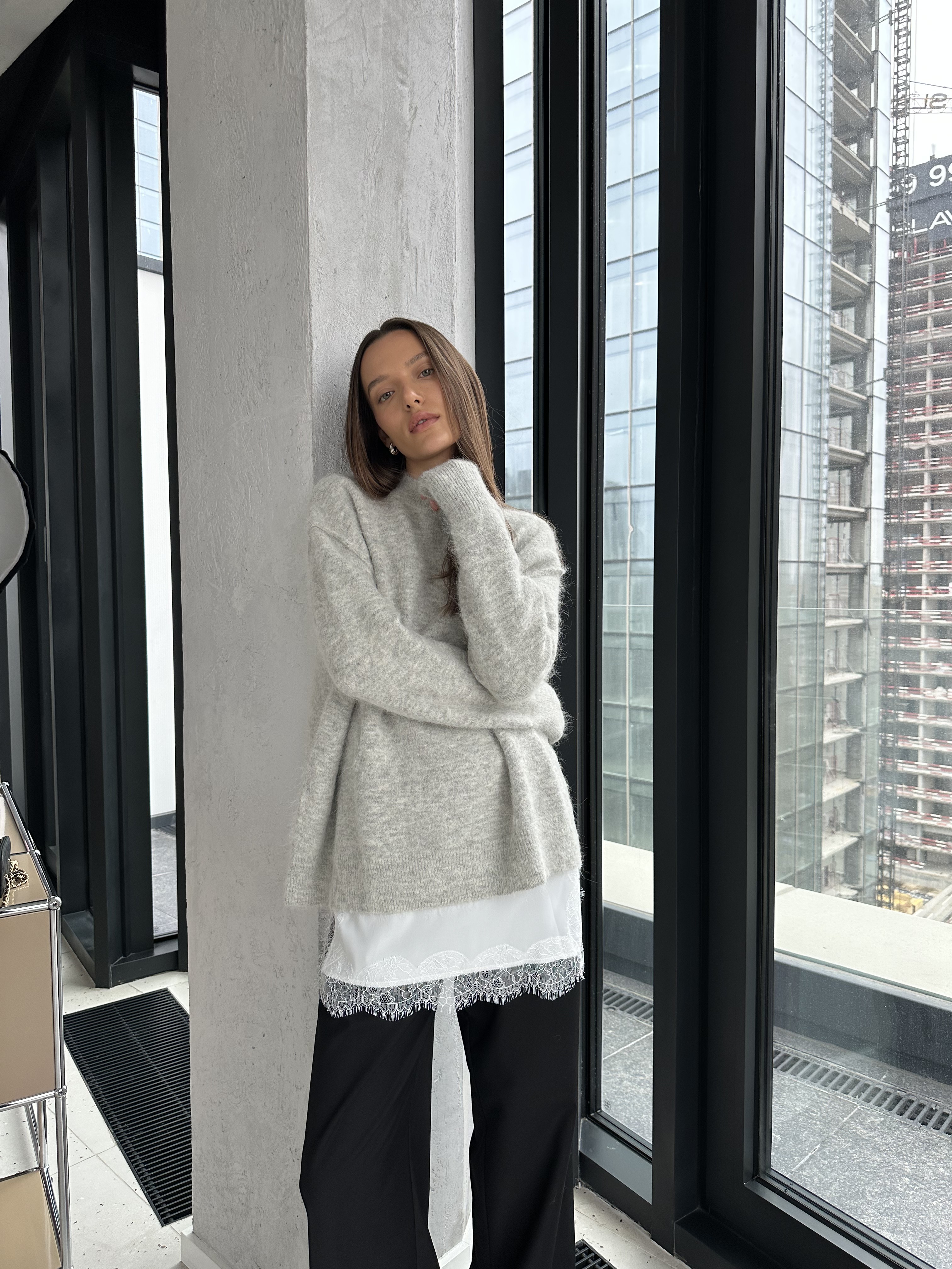 Трикотажный джемпер из пушистой пряжи на основе шерсти альпаки.