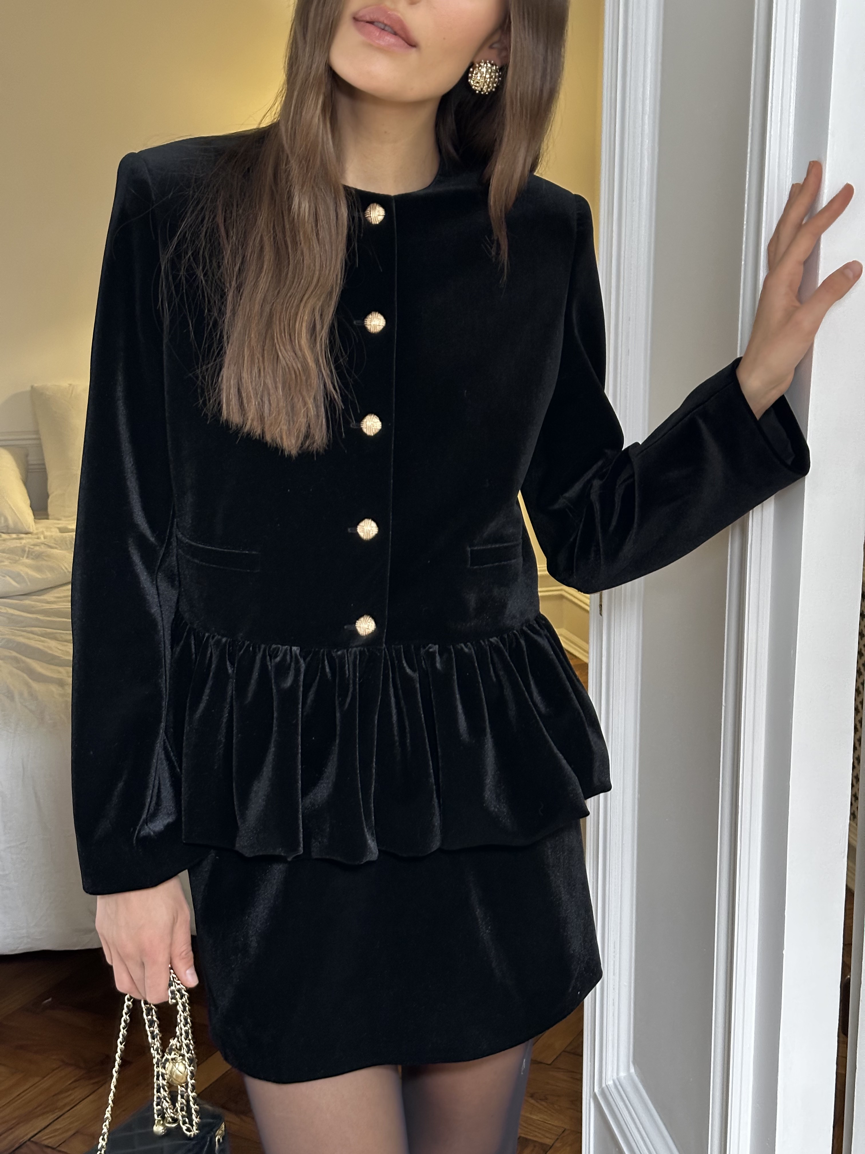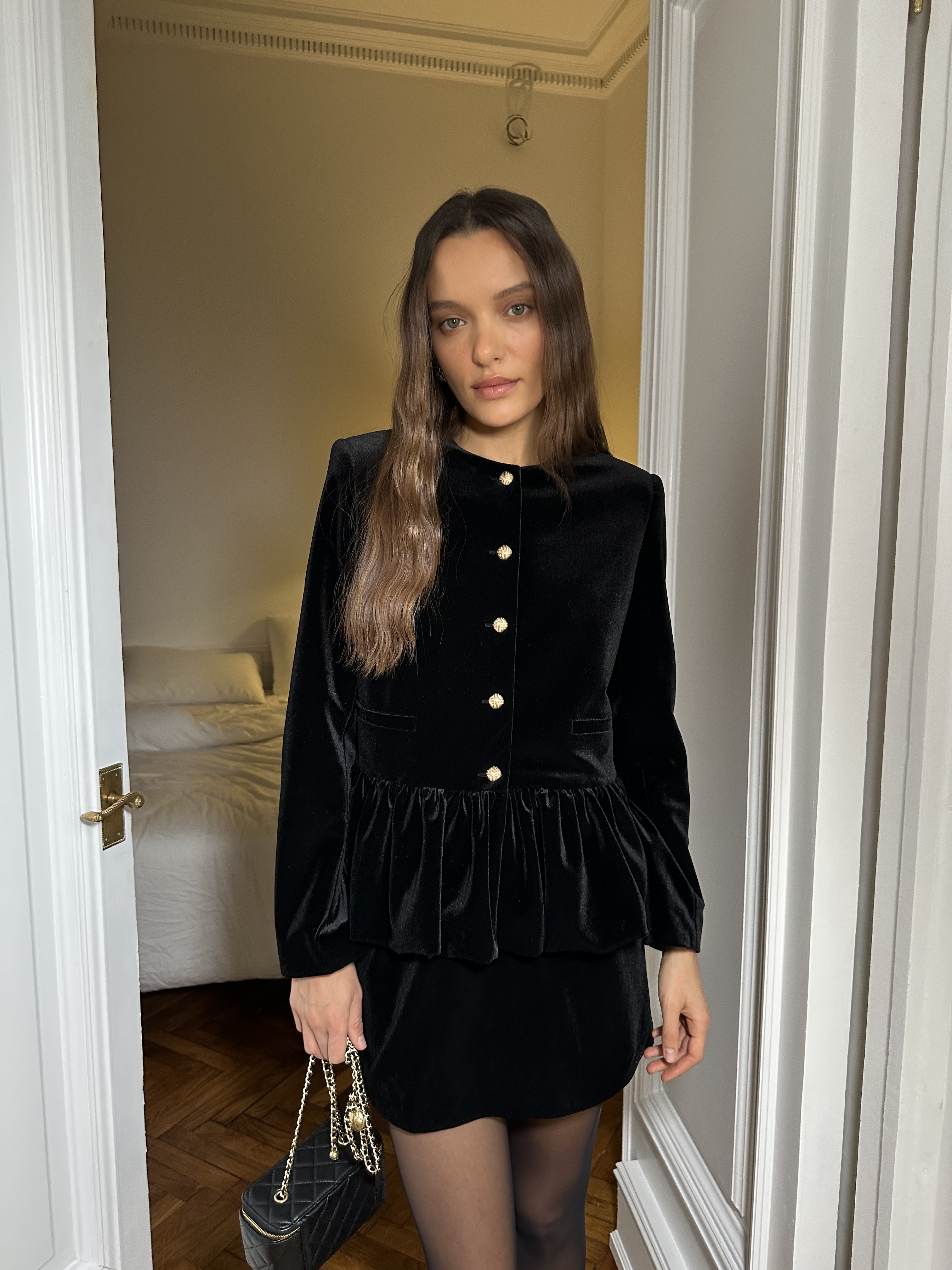 - Рекомендуем сочетать с бархатным жакетом с объемной баской из нашей коллекции.