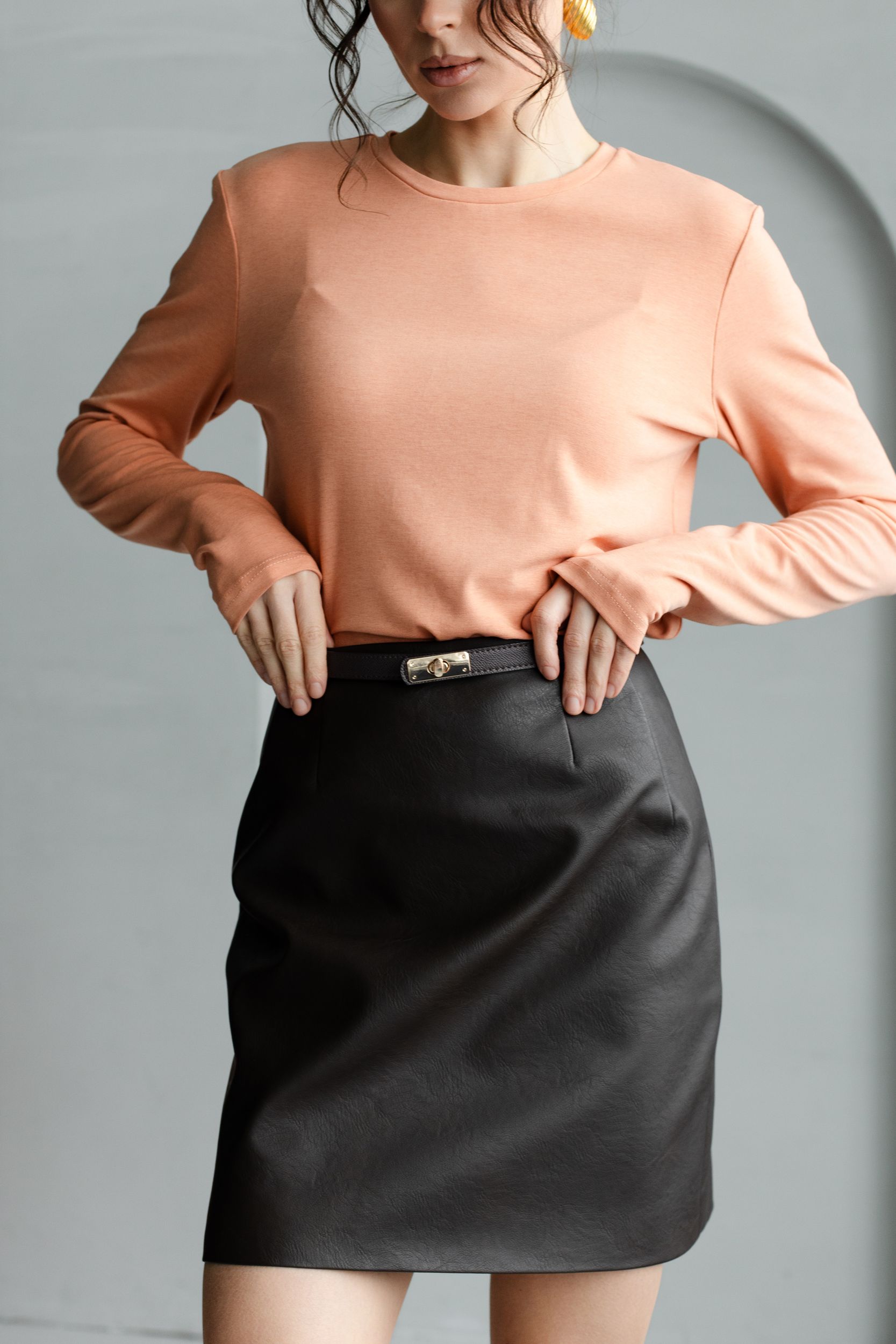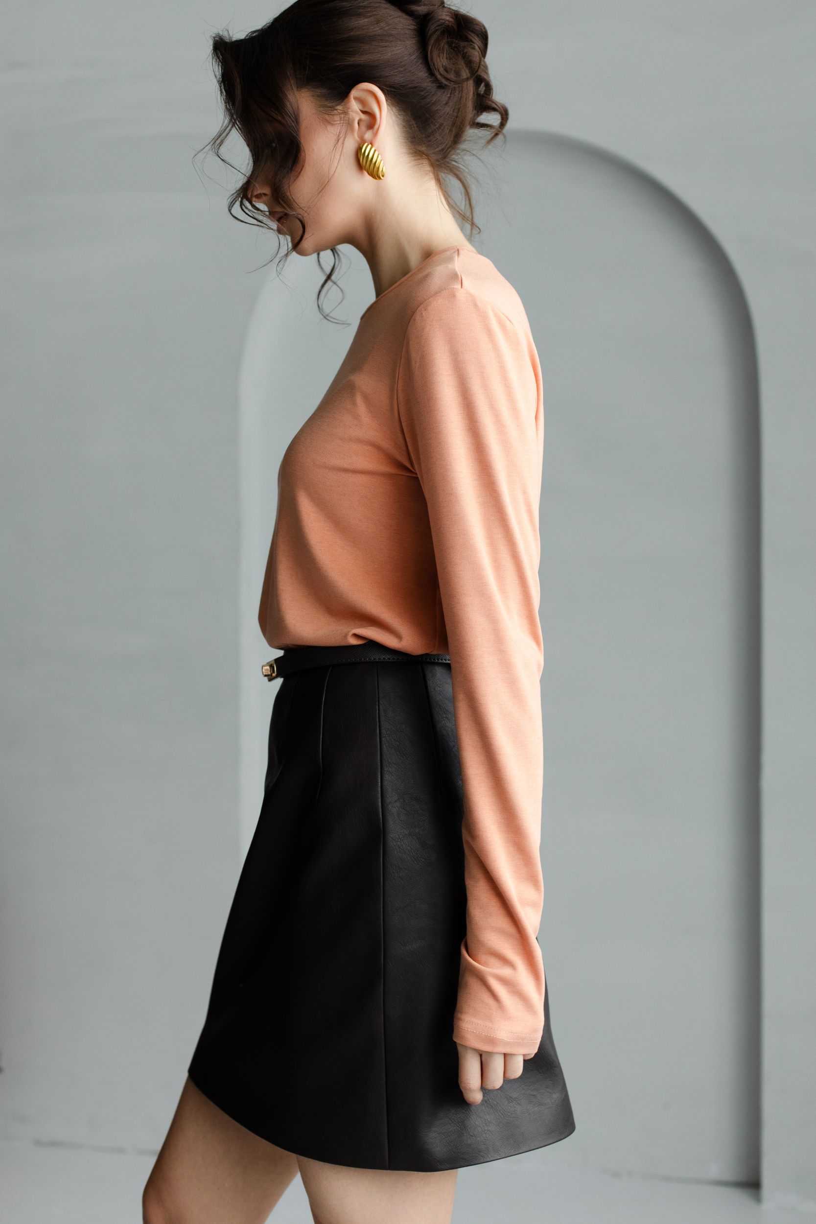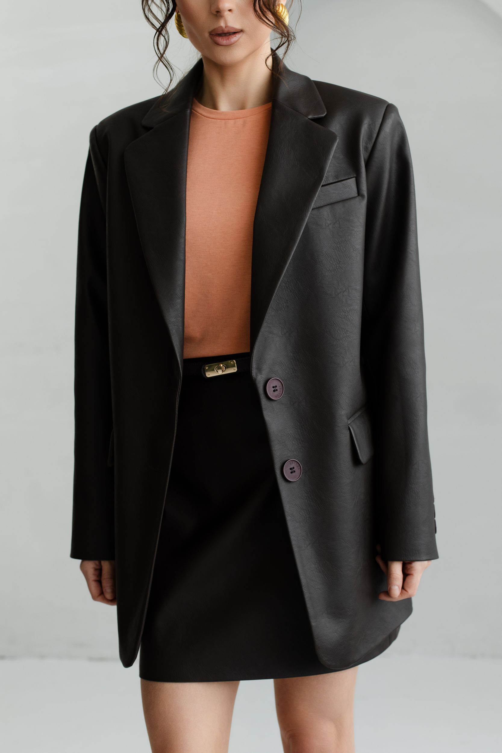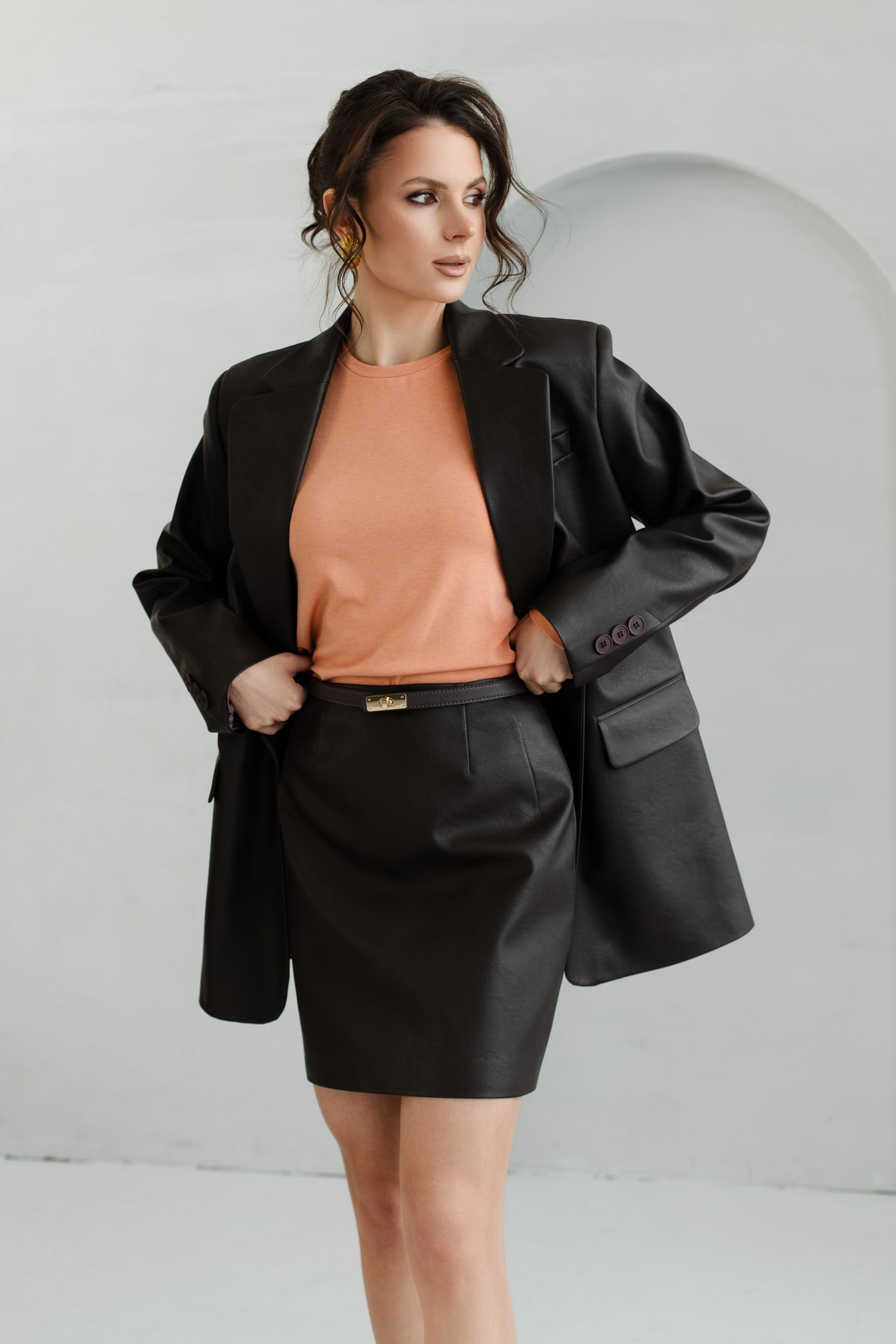 Юбка из искусственной матовой кожи в насыщенном шоколадном оттенке.