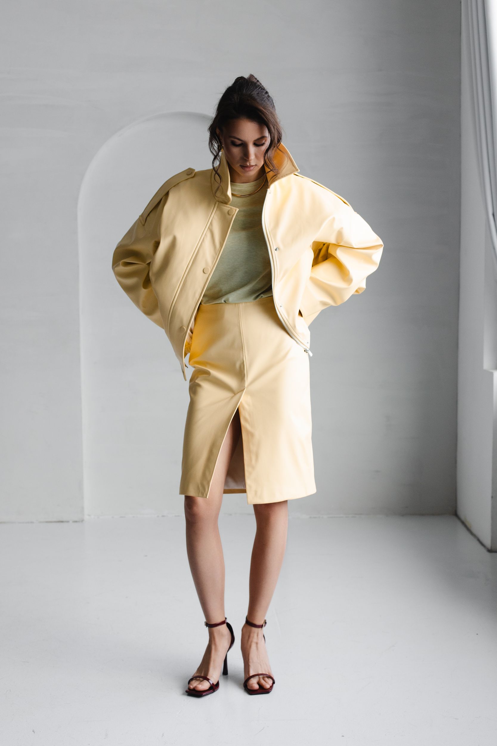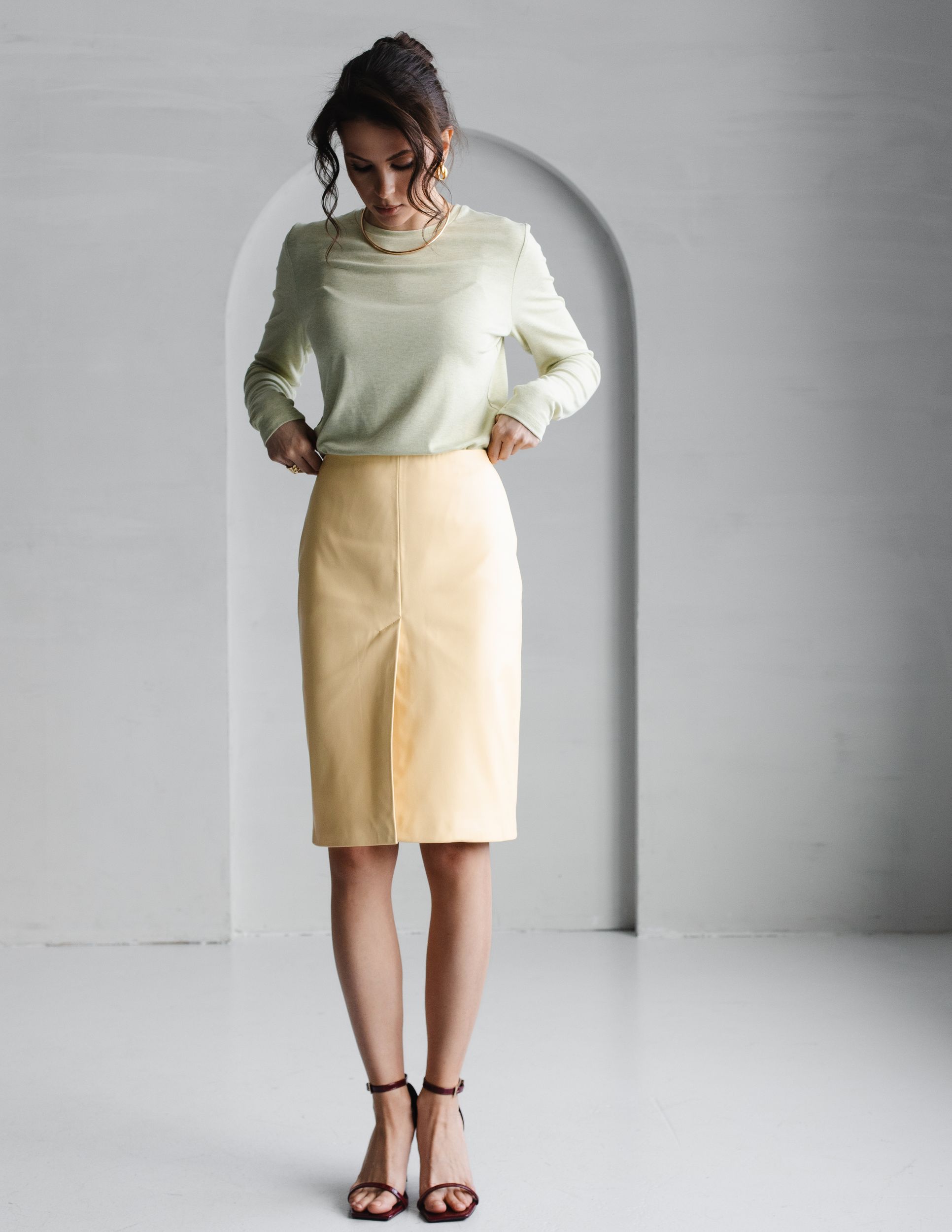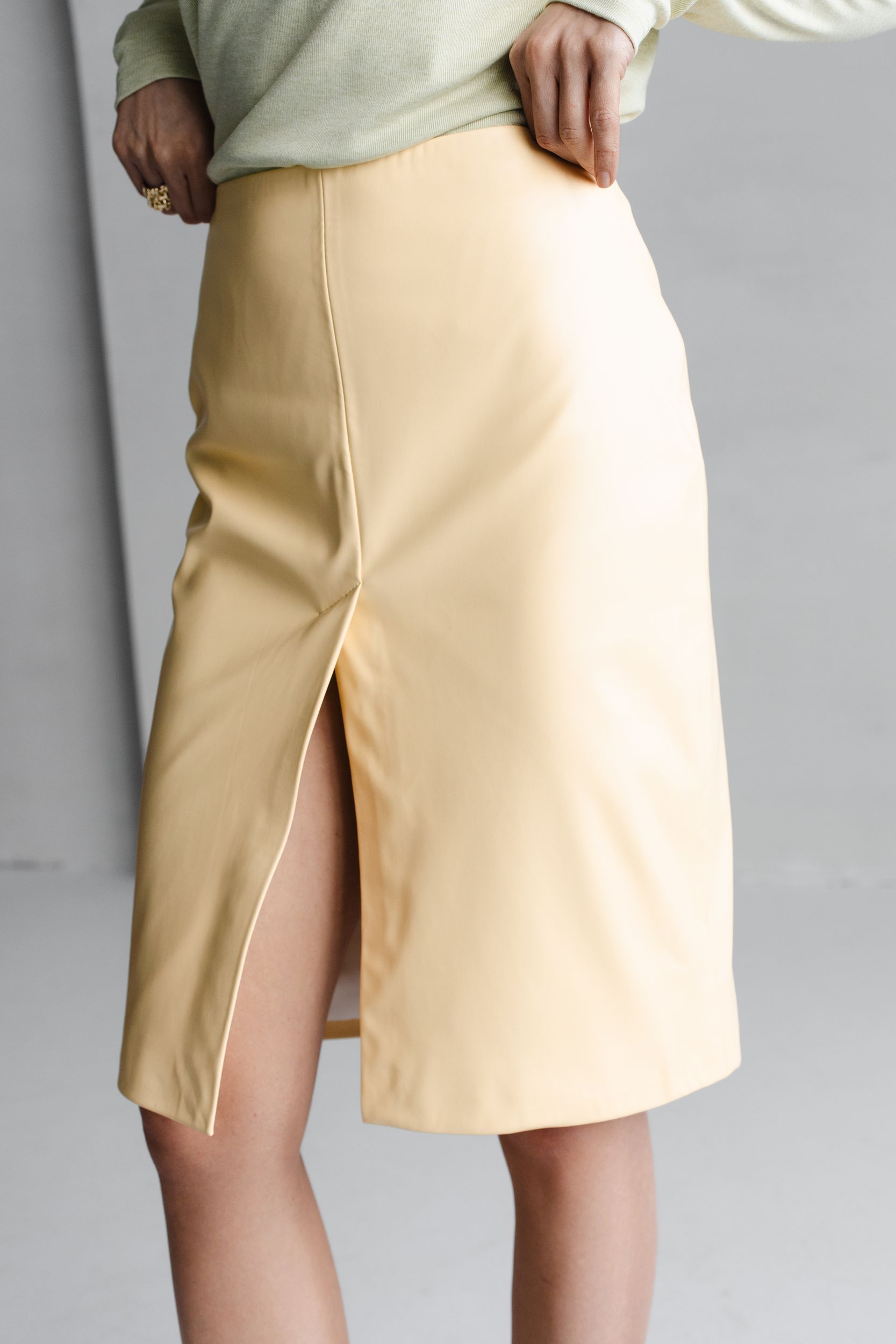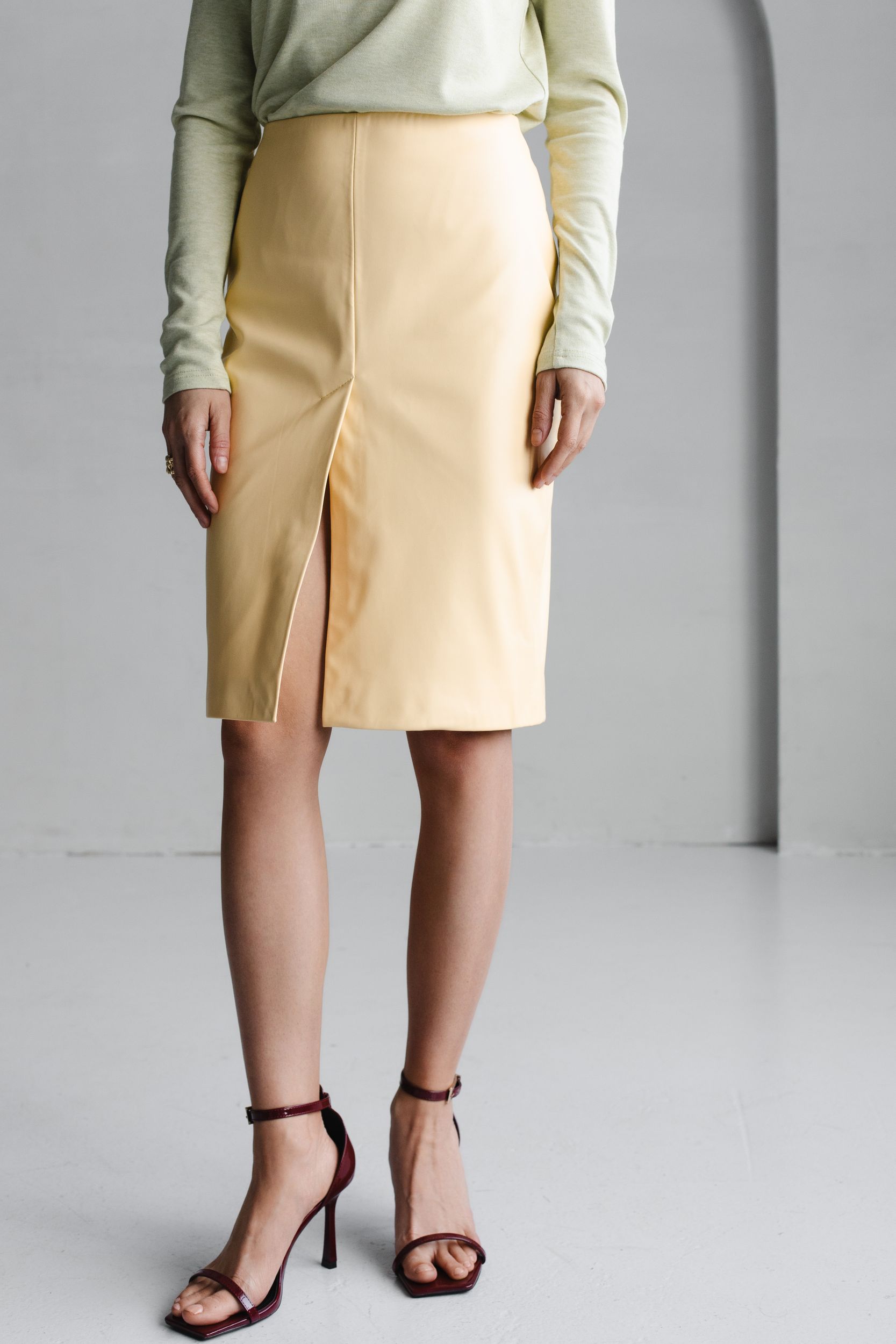 Юбка из искусственной матовой кожи в лимонном оттенке.