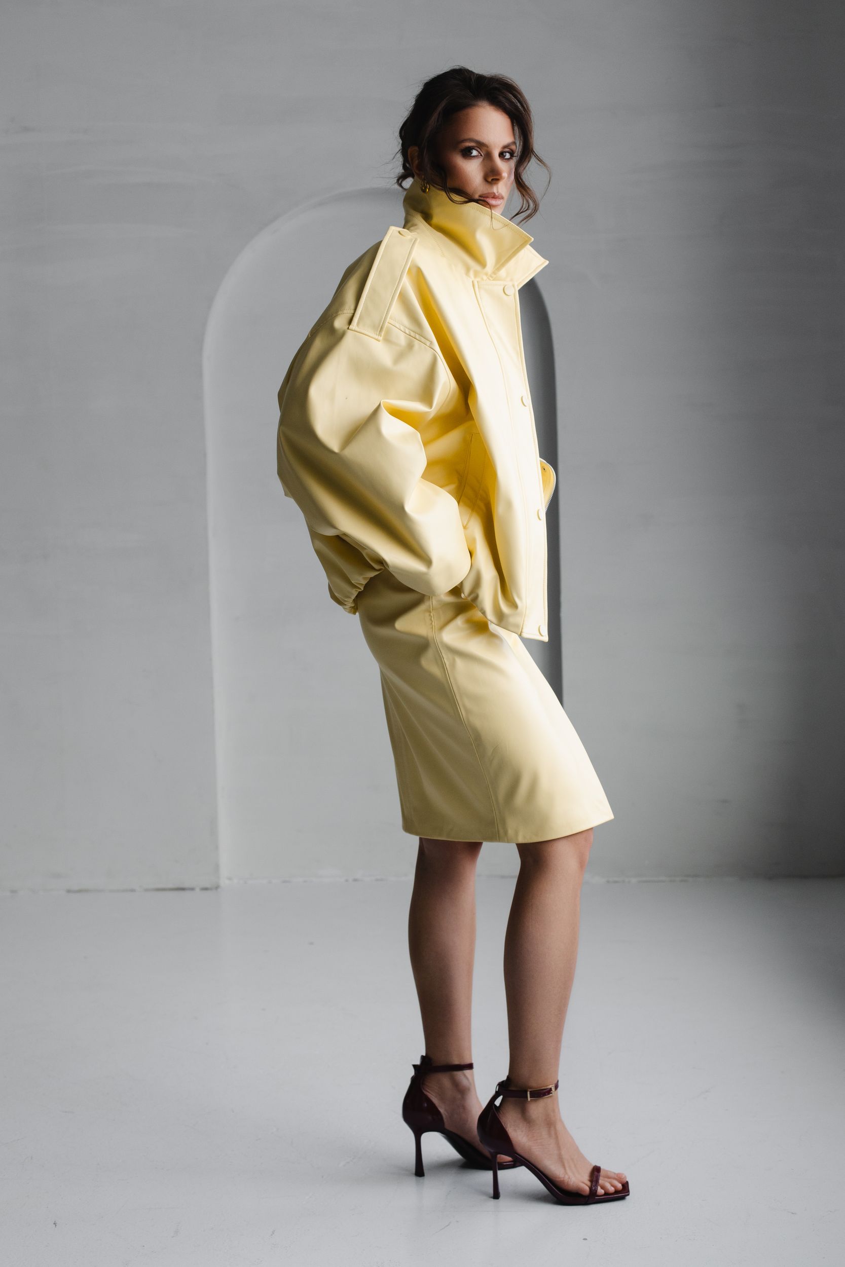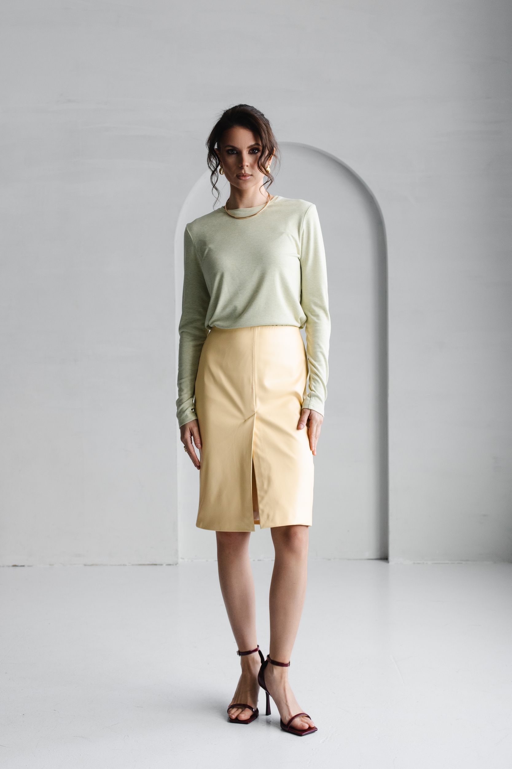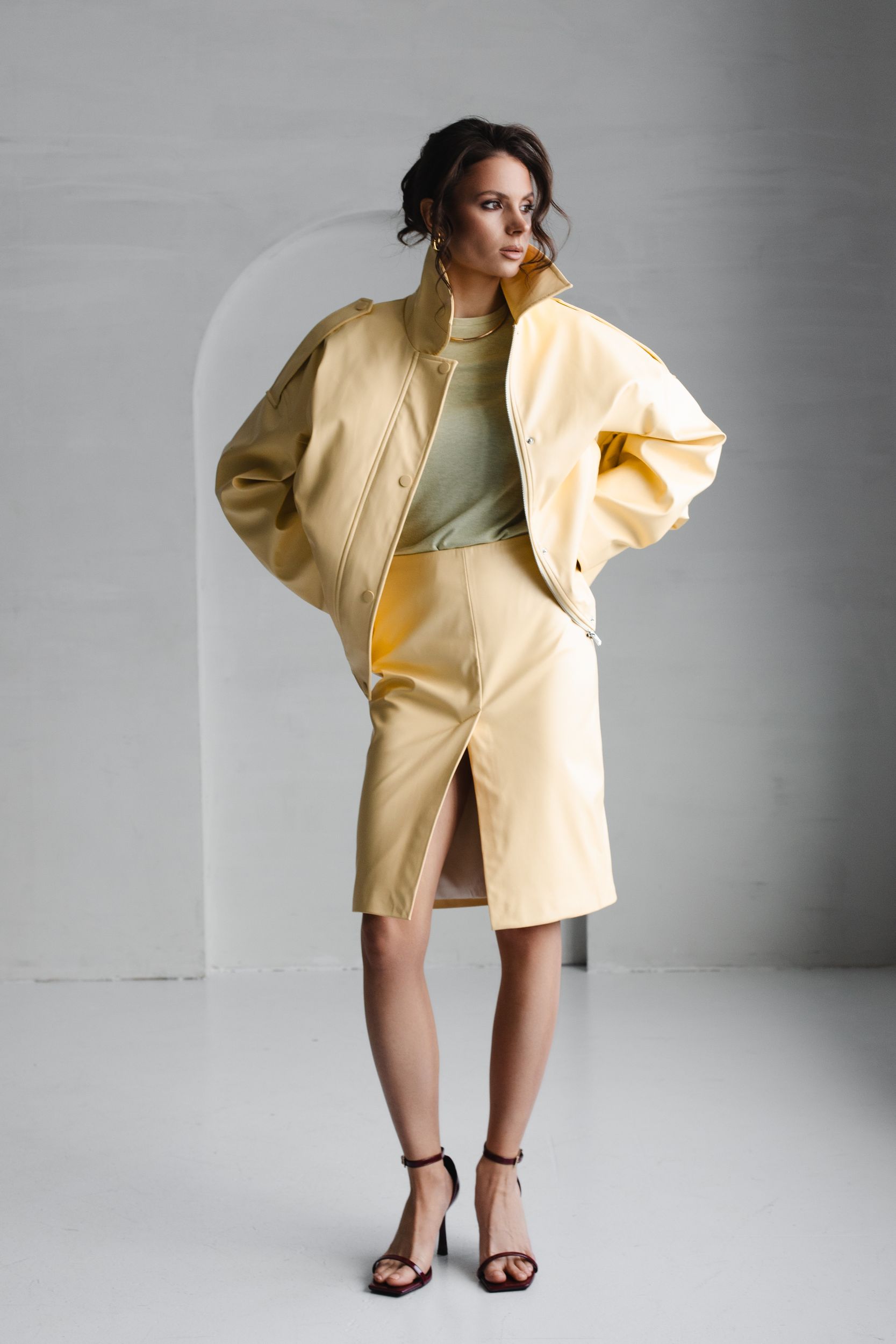 Юбка из искусственной матовой кожи в лимонном оттенке.