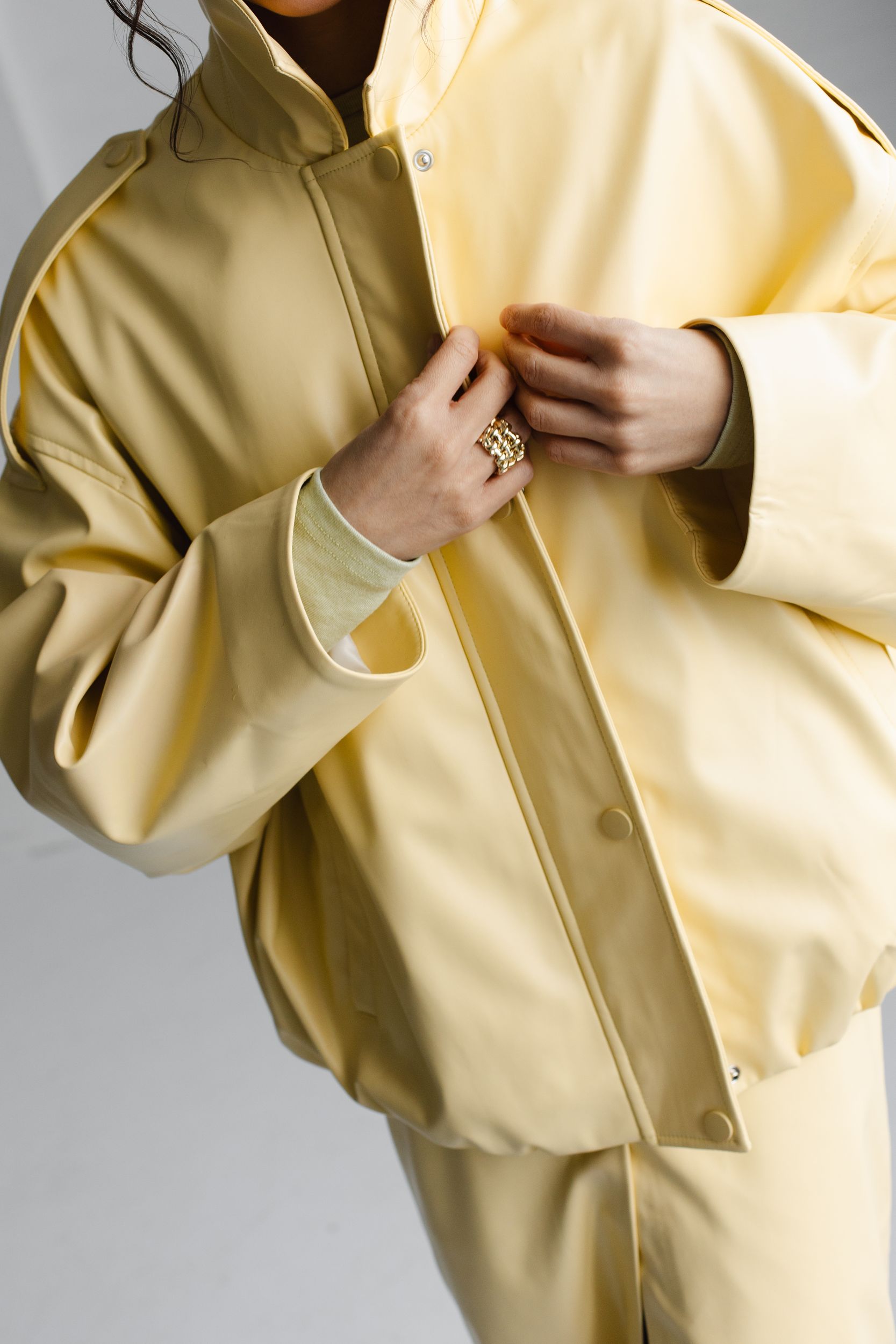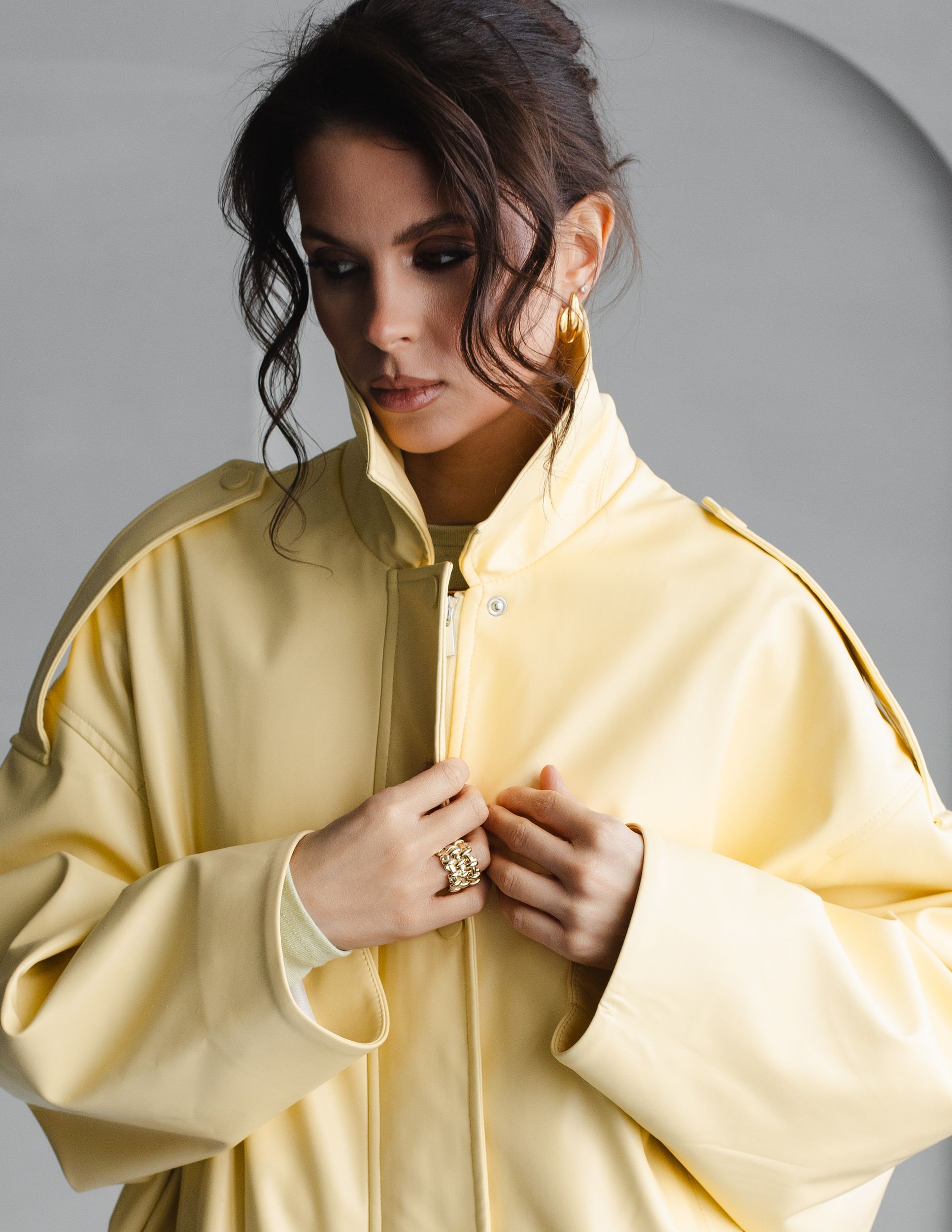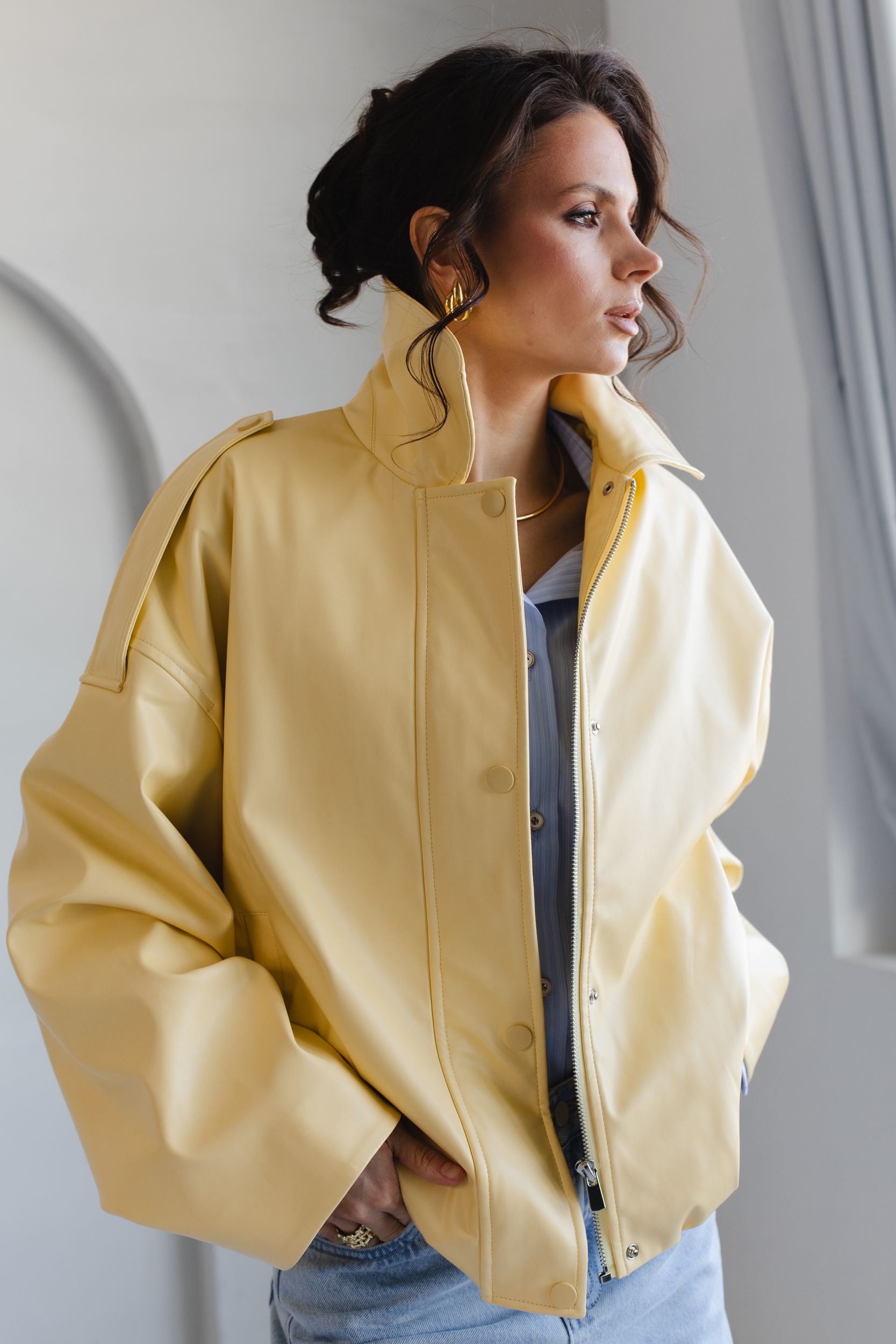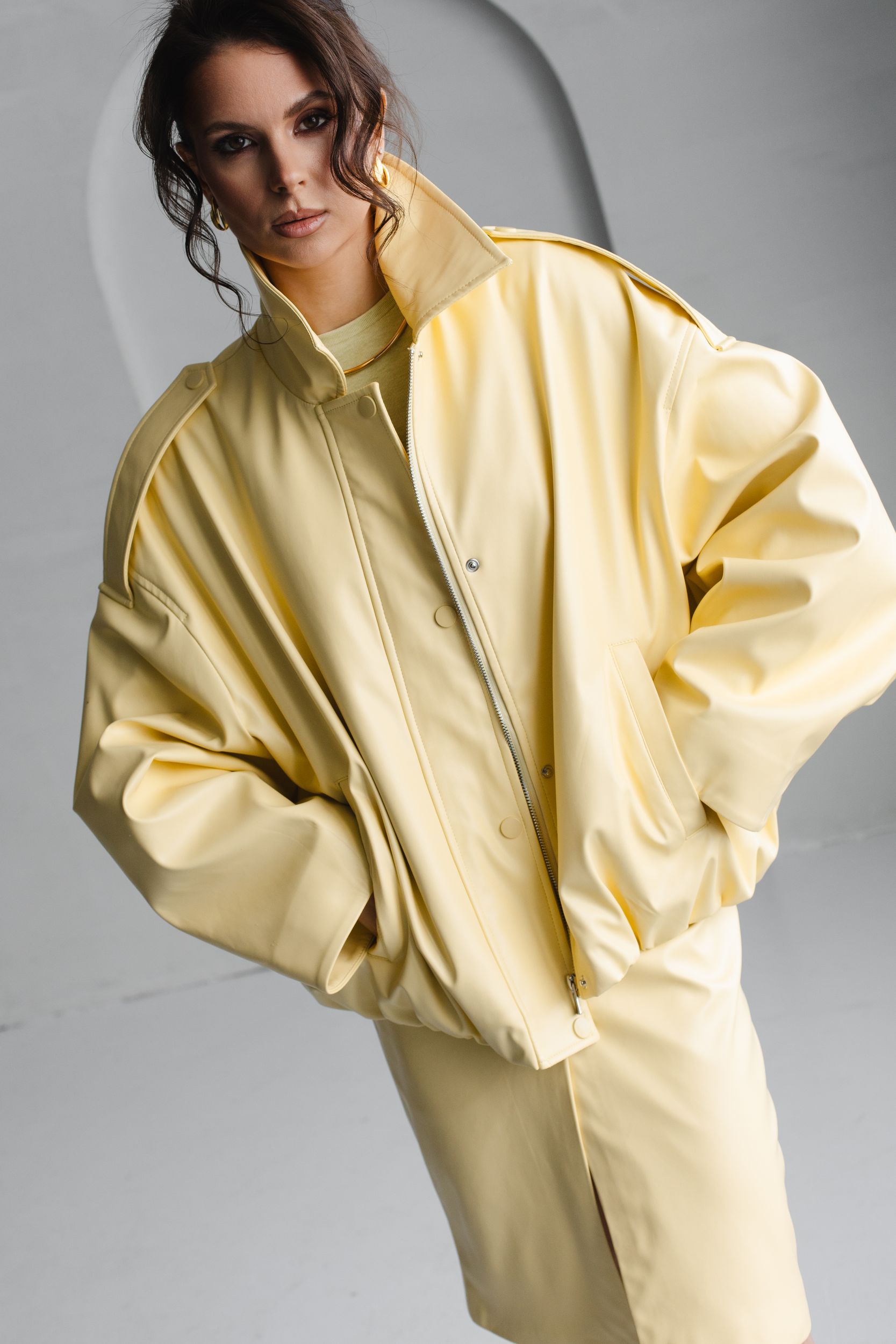 Юбка из искусственной матовой кожи в лимонном оттенке.
