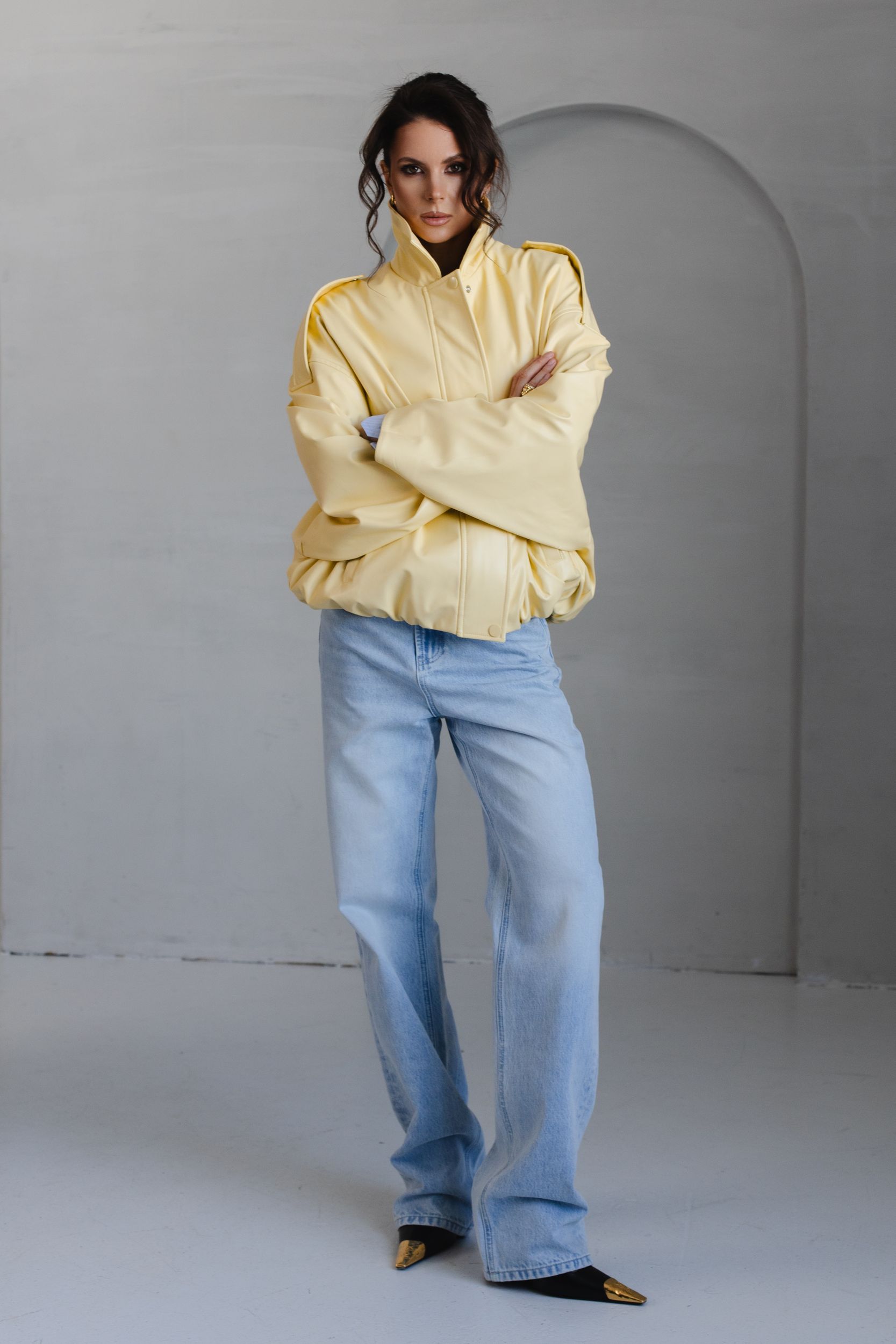 - Рекомендуем сочетать с бомбером из нашей коллекции из аналогичном материале.