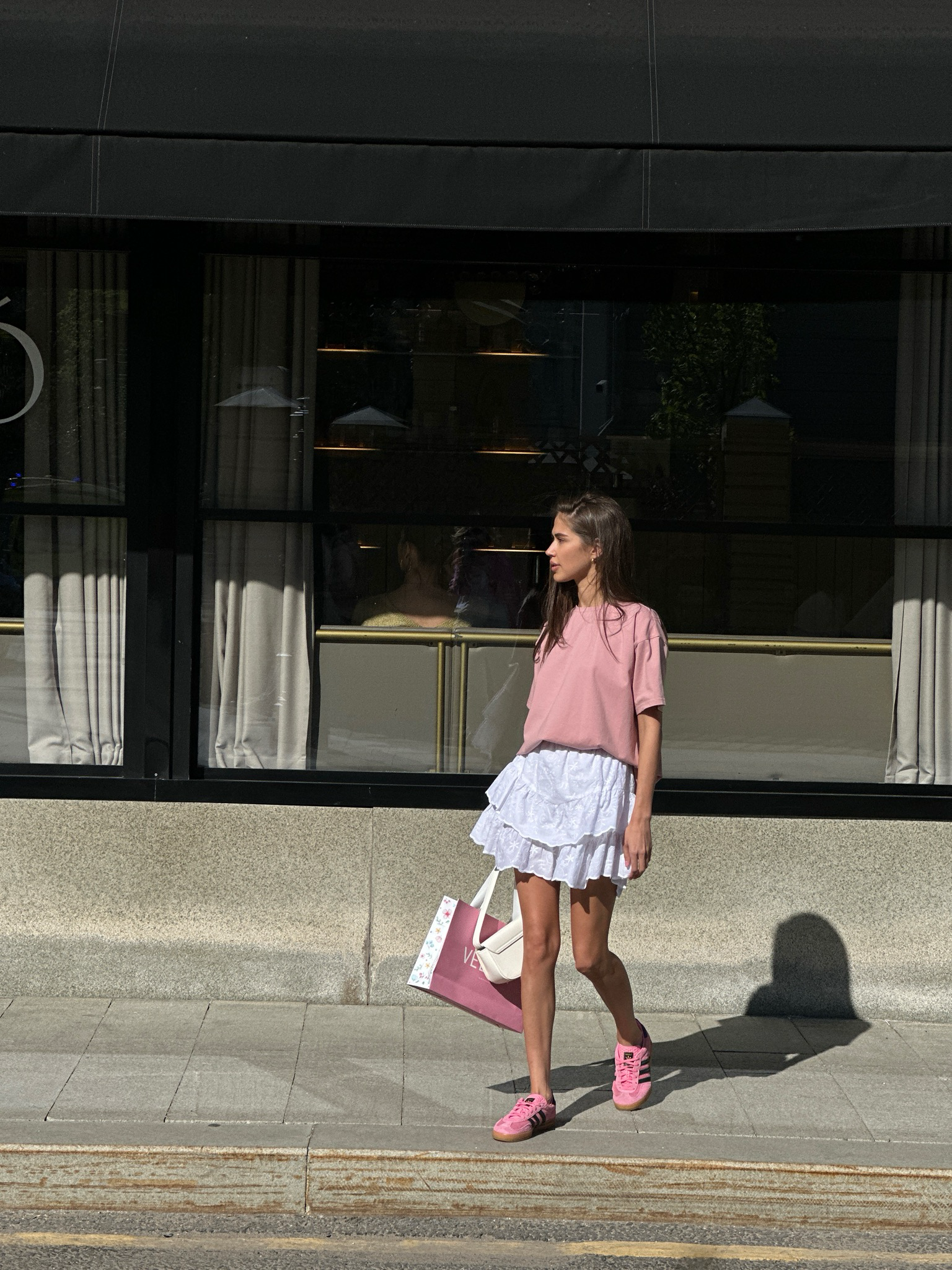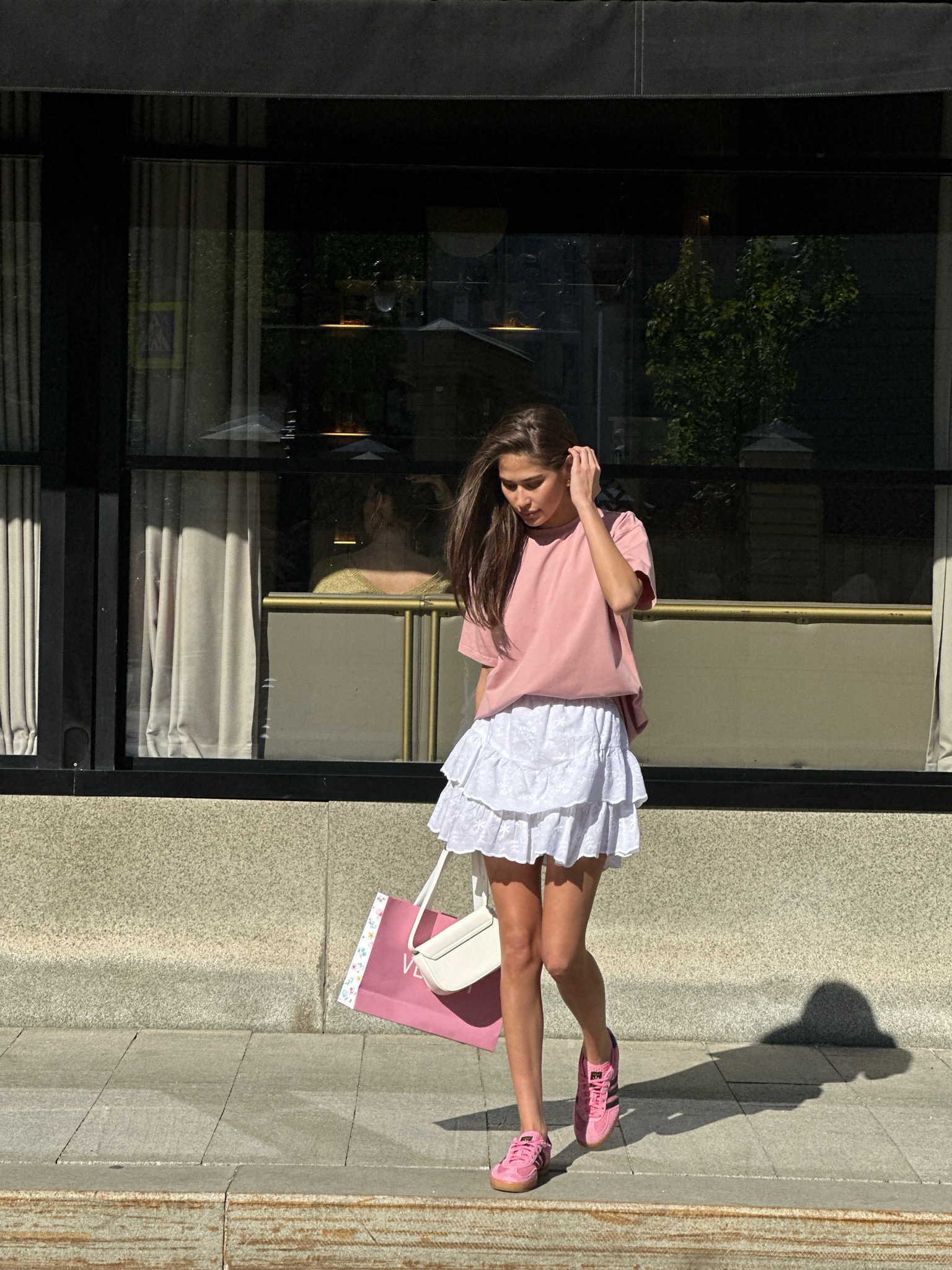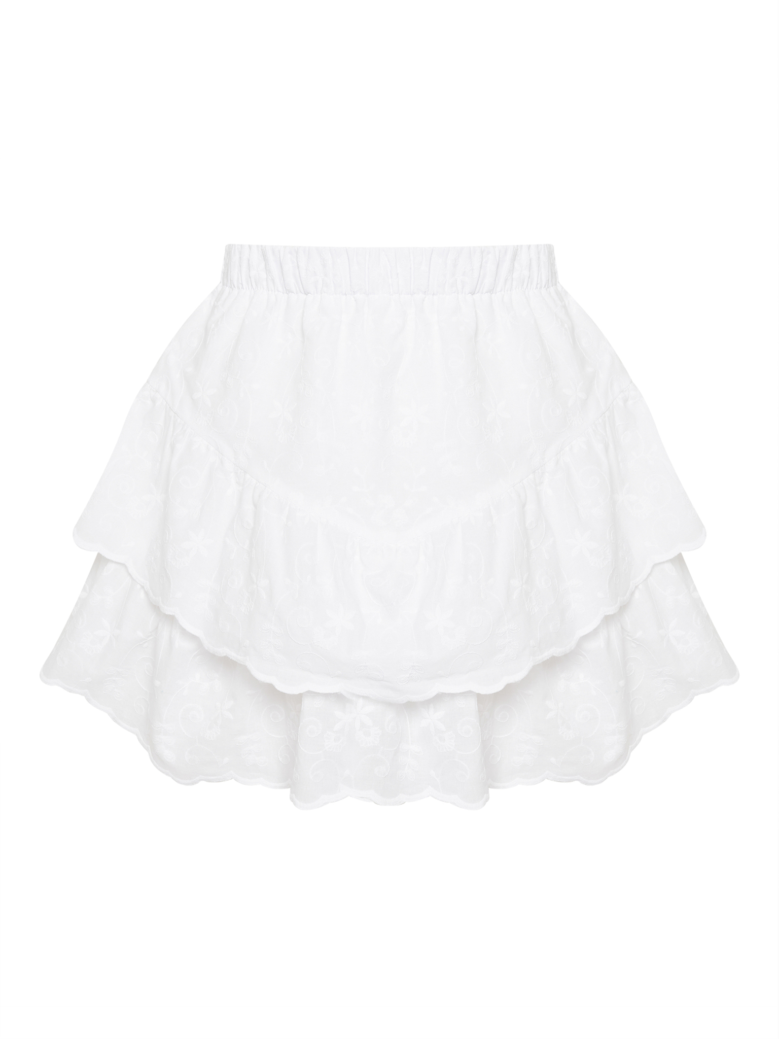 Кокетливая юбка из белого шитья в длине мини станет ярким элементом вашего гардероба.